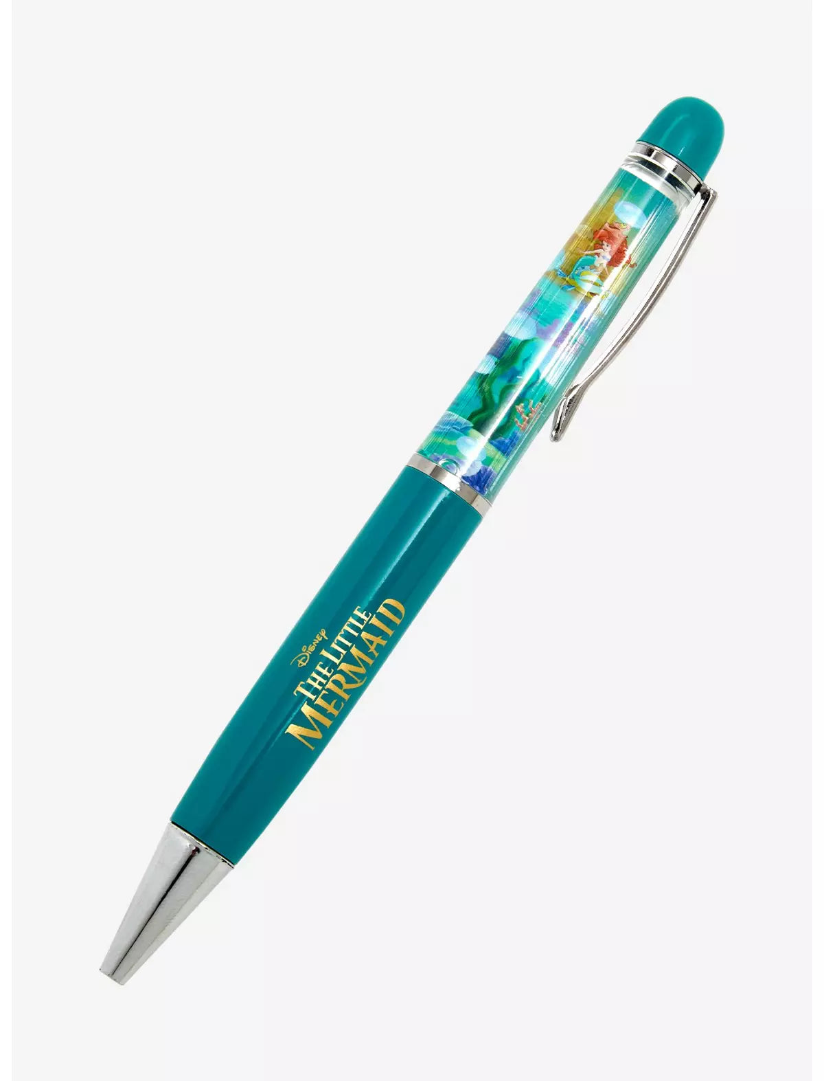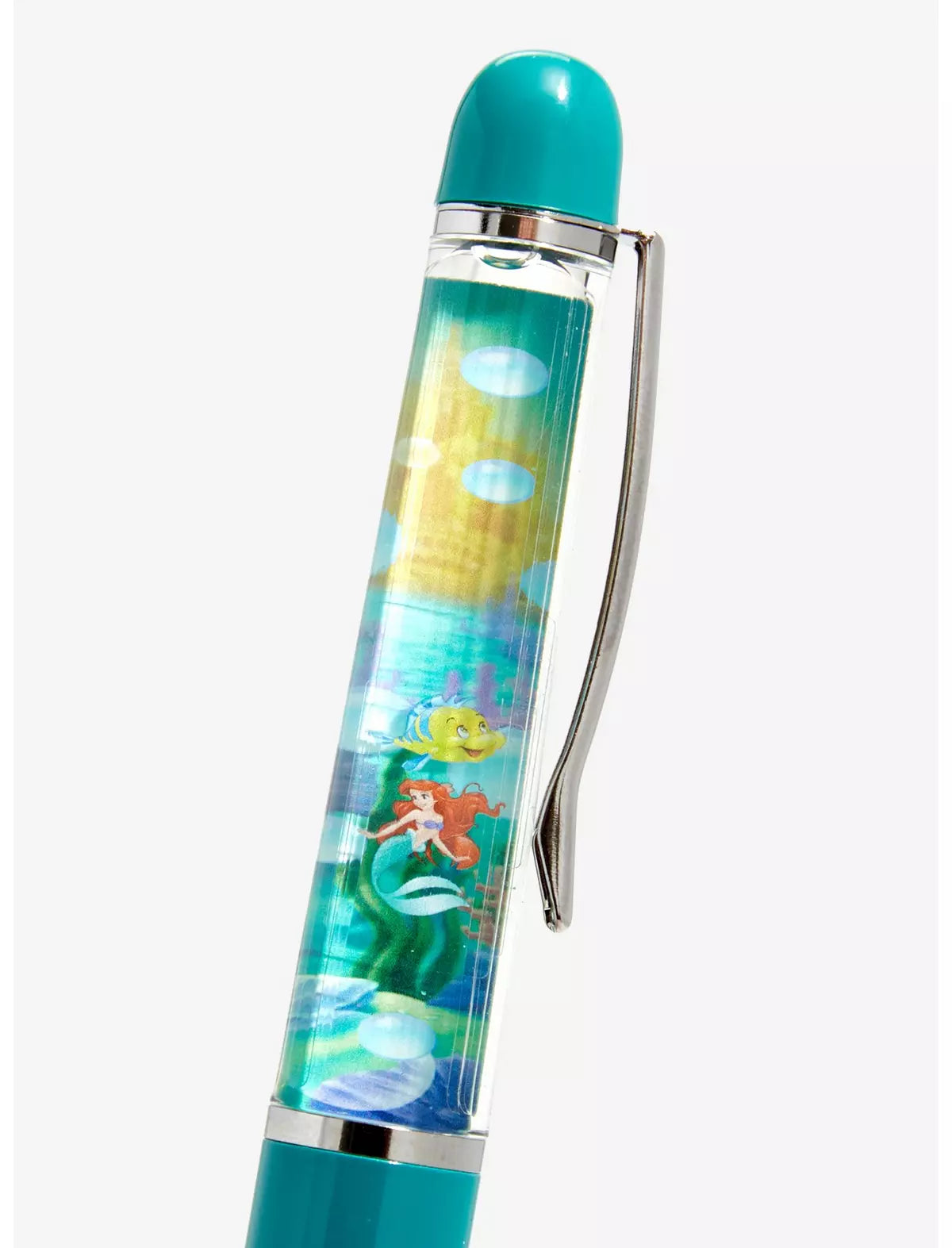 ¡Toma tus notas bajo el mar con este bolígrafo flotante La Sirenita! Con retratos de los personajes de Ariel y Flounder flotando en el interior lleno de líquido brillante, este bolígrafo es la manera perfecta de realizar un seguimiento de tus cosas.