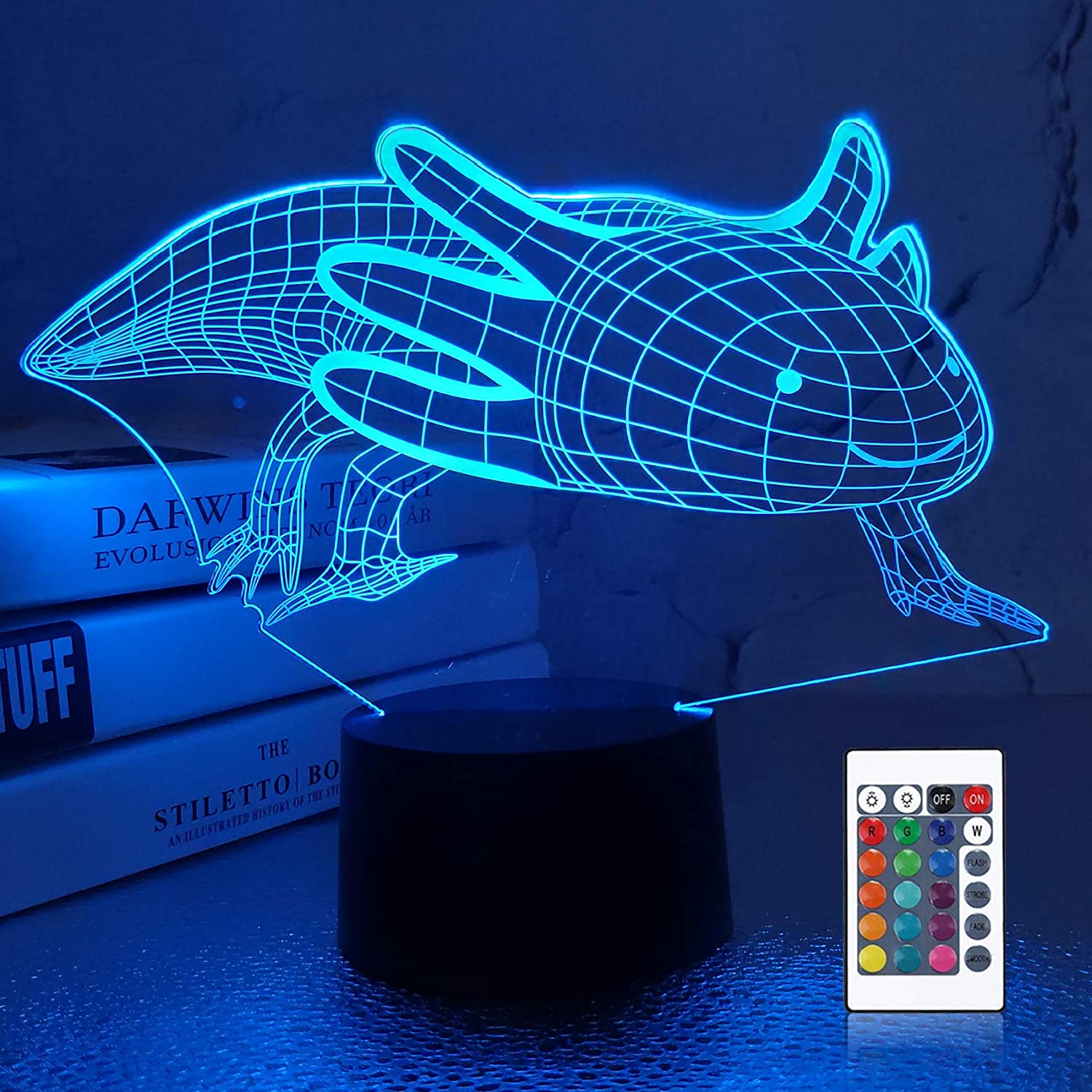 - ⭐ Suministros perfectos: la luz nocturna 3D de axolotl sería una gran luz de decoración para el hogar, oficina, dormitorio, bares, etc. Suministros perfectos para juguetes de niños, regalos de cumpleaños, regalos de Acción de Gracias, regalos de inauguración de la casa, regalos de graduación, regalos de Navidad para niños, bebés, niños pequeños, amigos.
