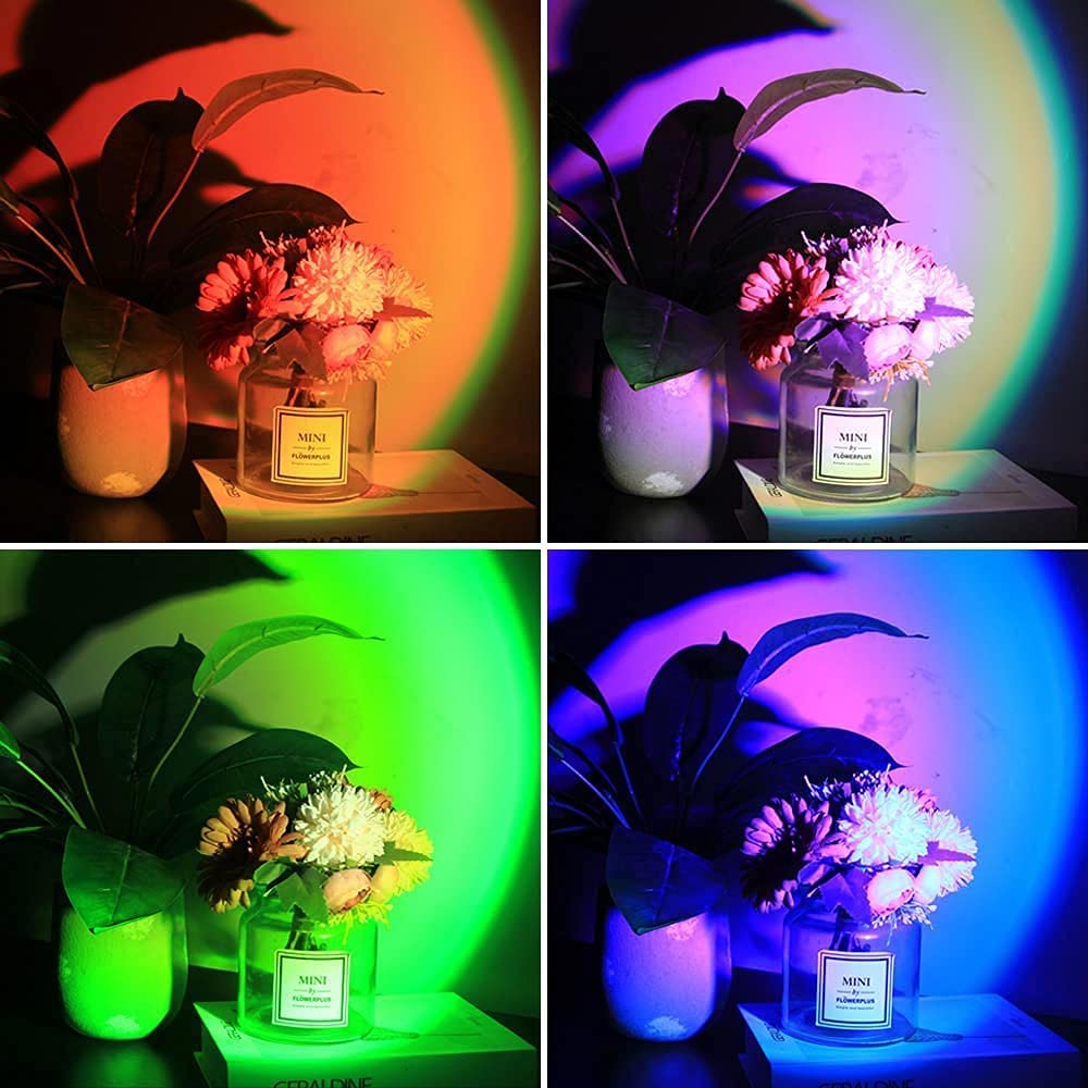 - Lámpara de puesta de sol de proyección con control remoto de 24 teclas, 16 colores de brillo, ajustable, cambio de color y modo de decoloración.