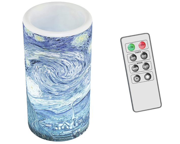 - Ilustración artística: la vela cuenta con un adhesivo de la clásica pieza de Van Gogh "Noche estrellada" y añadirá un maravilloso brillo a tu hogar, mientras que la cera perfumada de vainilla proporciona un toque relajante y mejora el ambiente creado por la belleza de la luz.