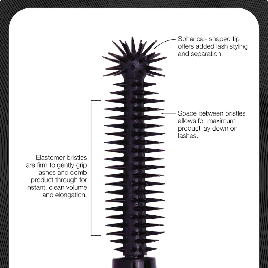 Qué más necesitas saber: Esta máscara utiliza ceras ligeras de lacquer tree y salvado de arroz para mantener las pestañas levantadas, mientras que los aceites de ricino y argán hidratan y acondicionan con el uso continuo. Viene con un cepillo de elastómero que sujeta y peina suavemente las pestañas para un volumen y alargamiento instantáneo, y su punta esférica permite estilizar y separar las pestañas.