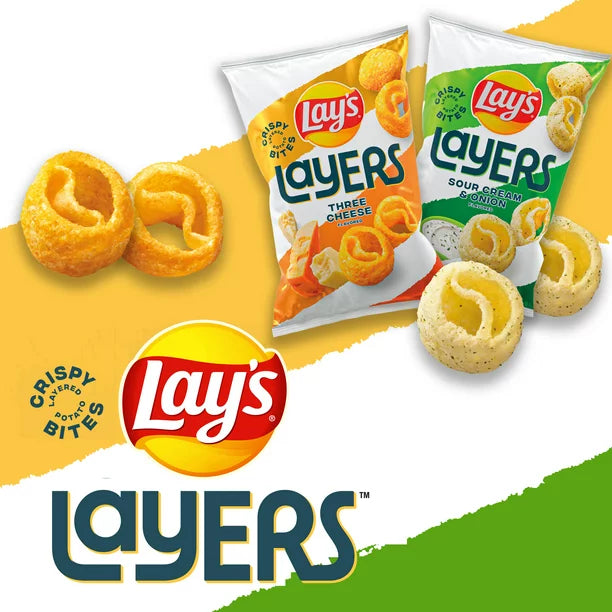 Presentamos Lay's Layers: un bocado de patata único en su tipo, multidimensional, con capas deliciosamente crujientes.