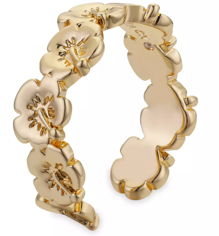 - Los recuerdos felices de Lilo & Stitch de Disney siempre estarán a mano con este anillo tropical. El diseño en tono dorado presenta flores de hibisco unidas con una espalda abierta ajustable, lo que lo hace perfecto, en todos los sentidos, para los fanáticos de Lilo & Stitch.