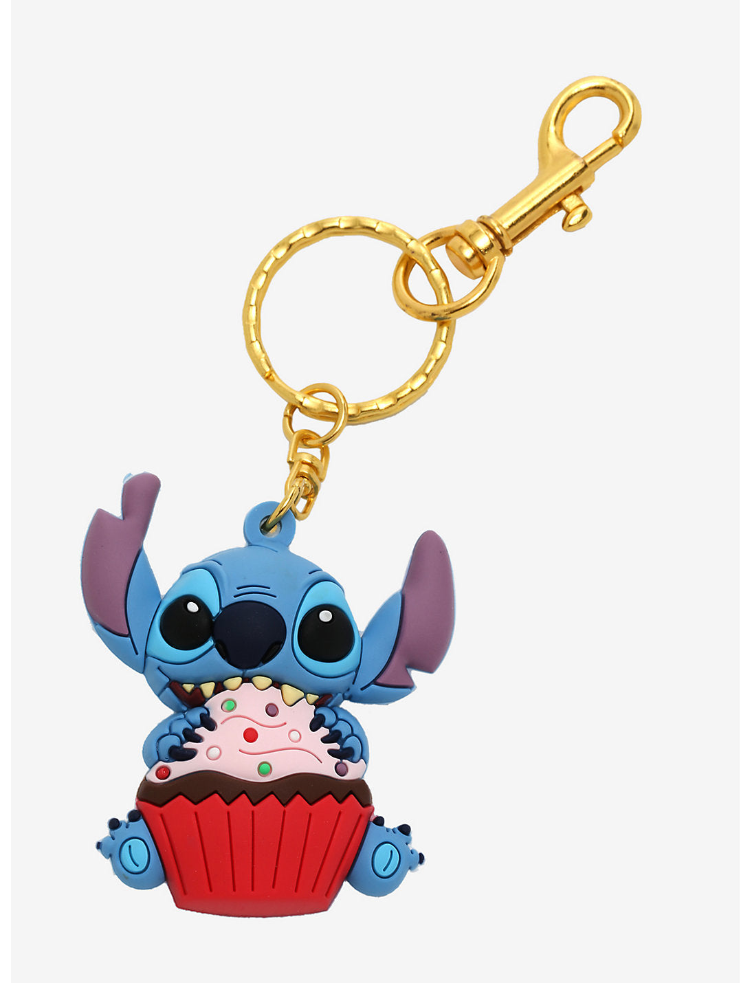 ¡Lleva contigo a tu "perro" favorito de Disney y una de sus golosinas favoritas con este llavero 3D de Lilo & Stitch! Con Stitch masticando felizmente un cupcake, este llavero es una dulce adición a tu colección de bolsos o llaveros.