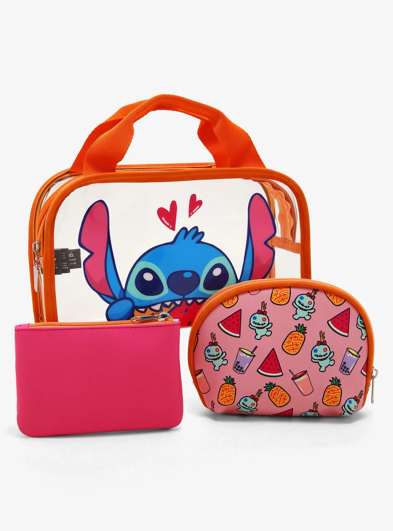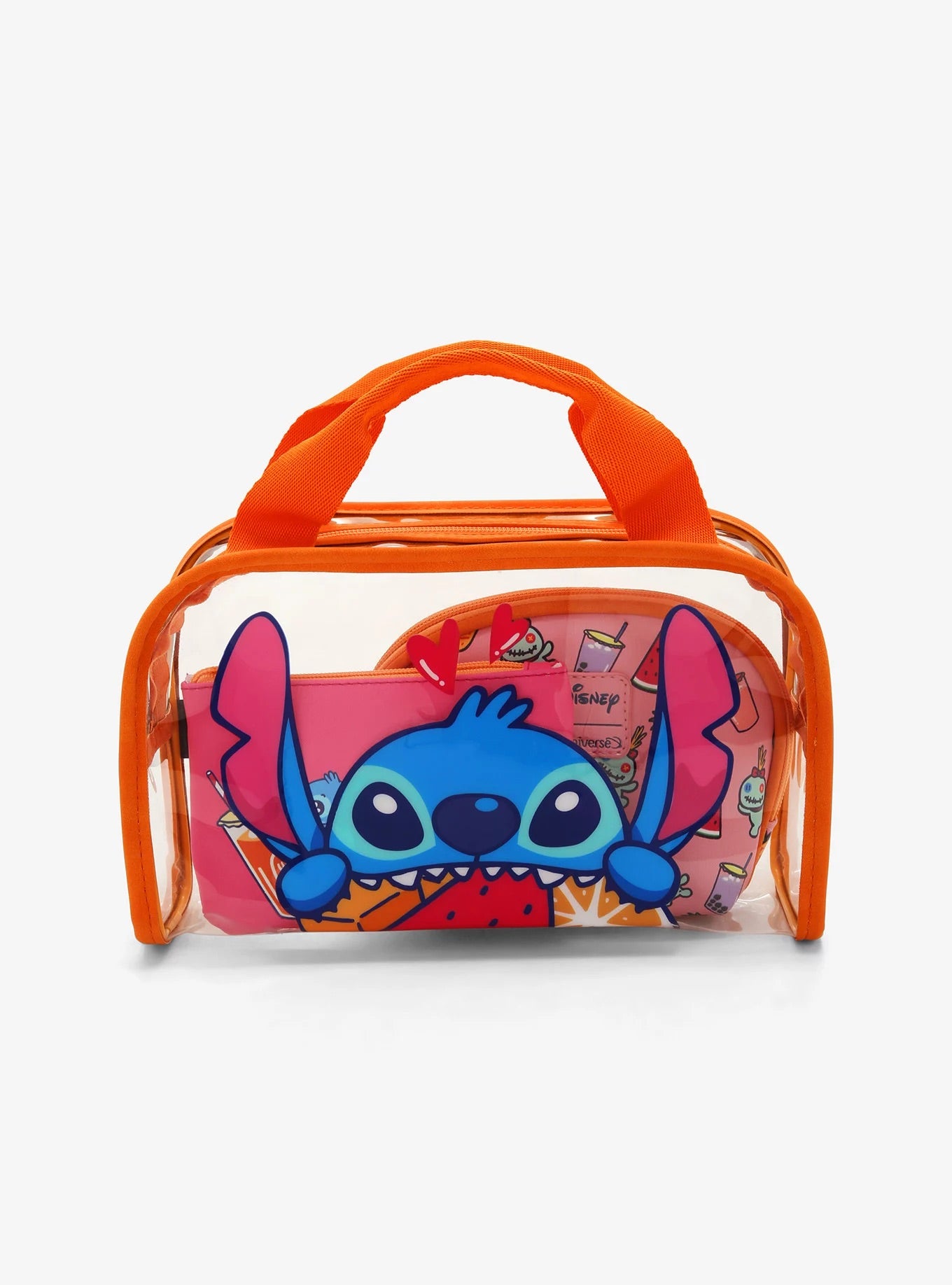 ¡Haz tu rutina matutina un poco más dulce con estas bolsas de cosméticos de Our Universe! Con Stitch con dulces como sandía, piña y boba, este juego de bolsas Lilo & Stitch incluye una bolsa transparente y dos más pequeñas para todas sus necesidades de almacenamiento de cosméticos.