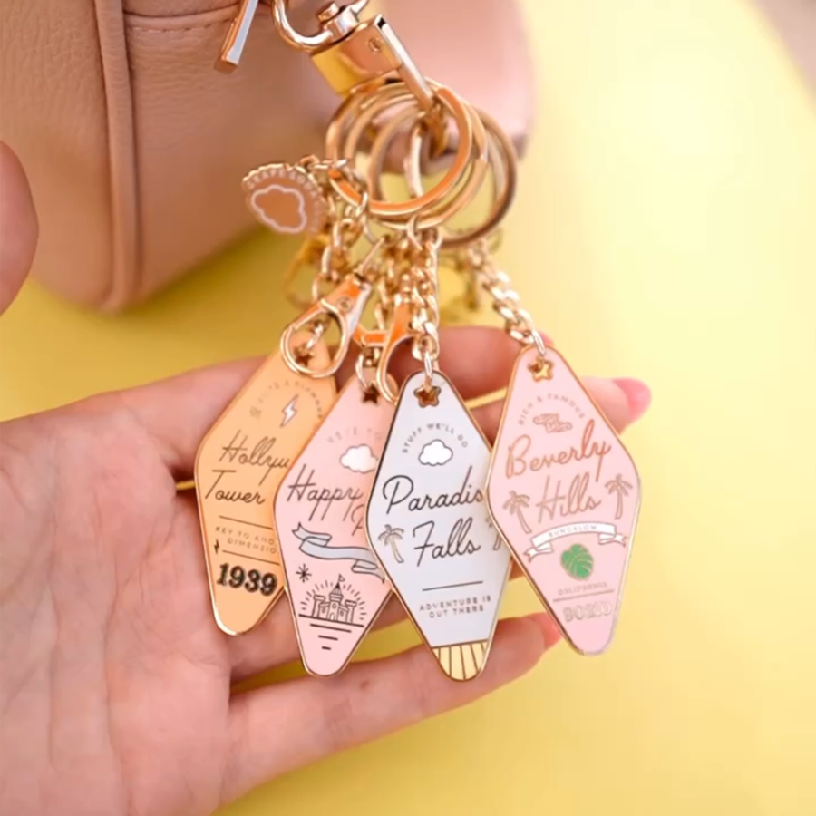 Tipo: metal chapado en oro, esmalte duro. Llavero de anillo dividido y llavero con cierre de langosta con logotipo de Cloud chapado en oro
