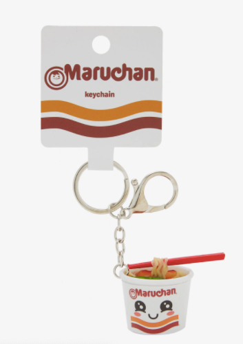 ¡Lleve una taza de exquisitez donde quiera que vaya! Este llavero 3D presenta una taza de fideos Maruchan con la cara más linda.