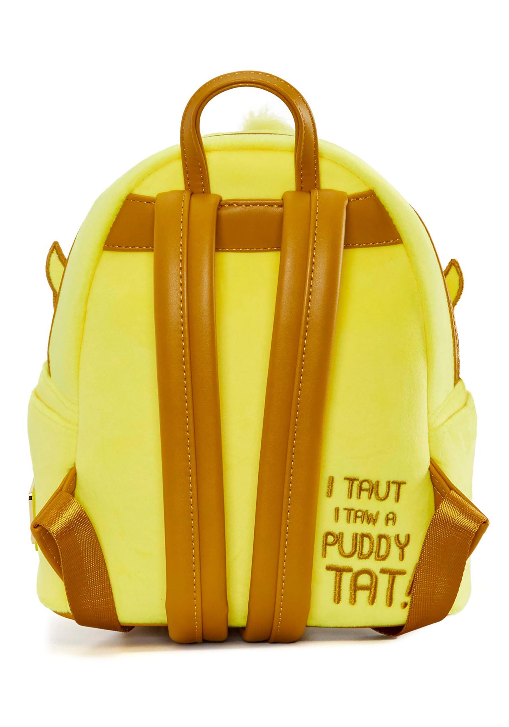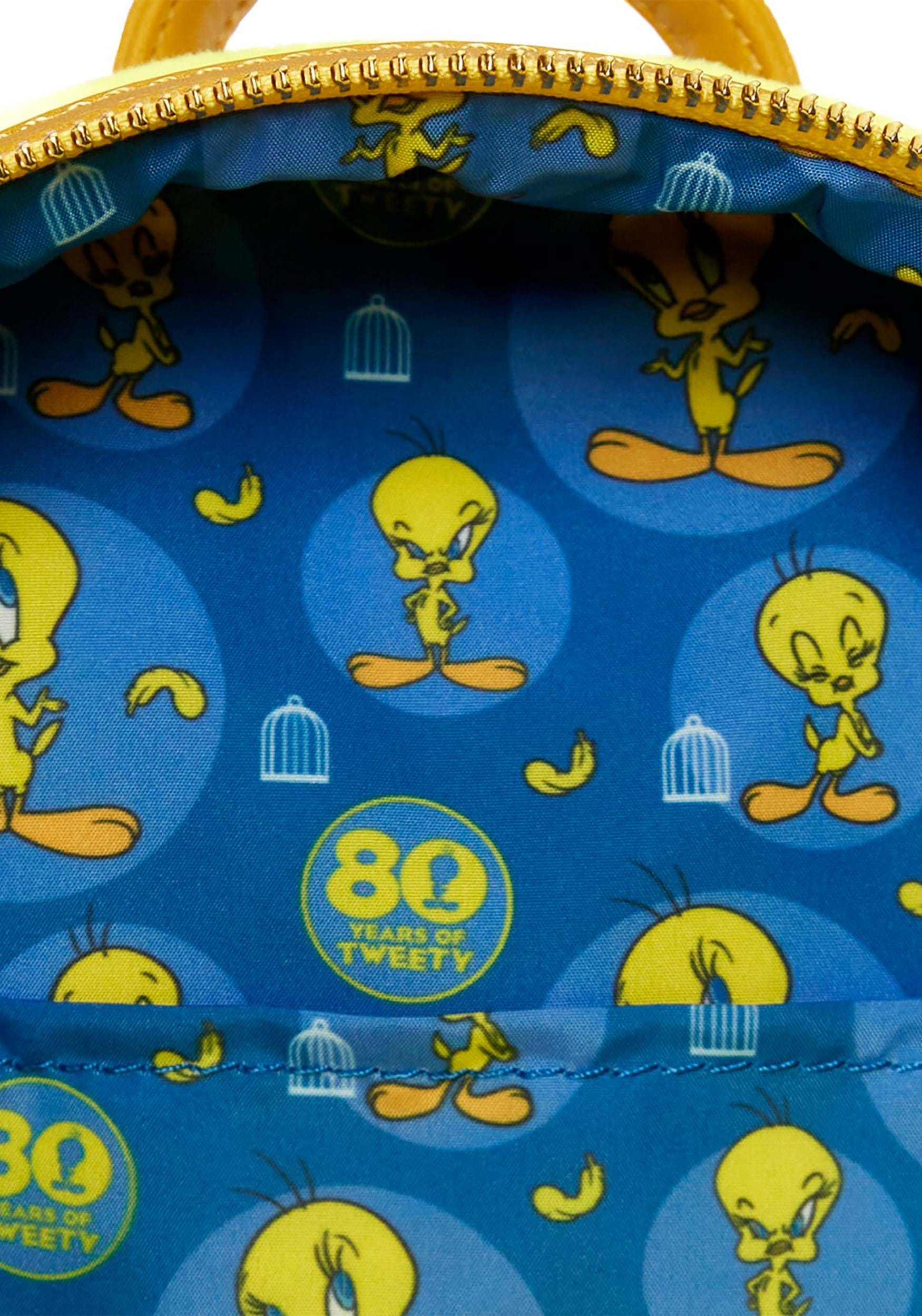 Todos somos un poco Looney. Grítelo al mundo de una manera más tranquila con esta minimochila de felpa Loungefly Looney Tunes Tweety. Está hecho de piel sintética de poliuretano para mayor durabilidad. Hay un revestimiento de terciopelo cepillado para una sensación suave y lujosa. El forro del bolso es de tela. Las cremalleras superiores se cierran con una cremallera bidireccional para mantener todas tus cosas seguras. ¿Y qué lindas son las alas, los pies y la cara? Son apliques y bordados. Las alas se pueden mover y son suaves al tacto. Las correas ajustables para los hombros se adaptan a usuarios de cualquier tamaño y son tan lujosas como las alas. Eres súper tweet, y tu bolso también puede serlo.
