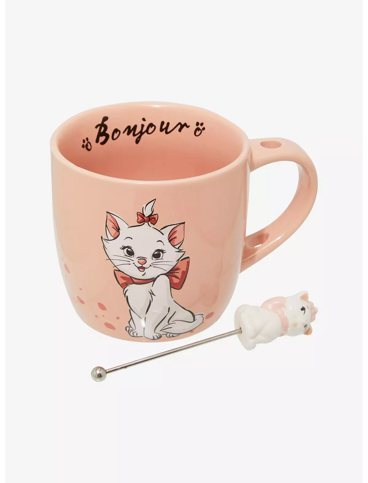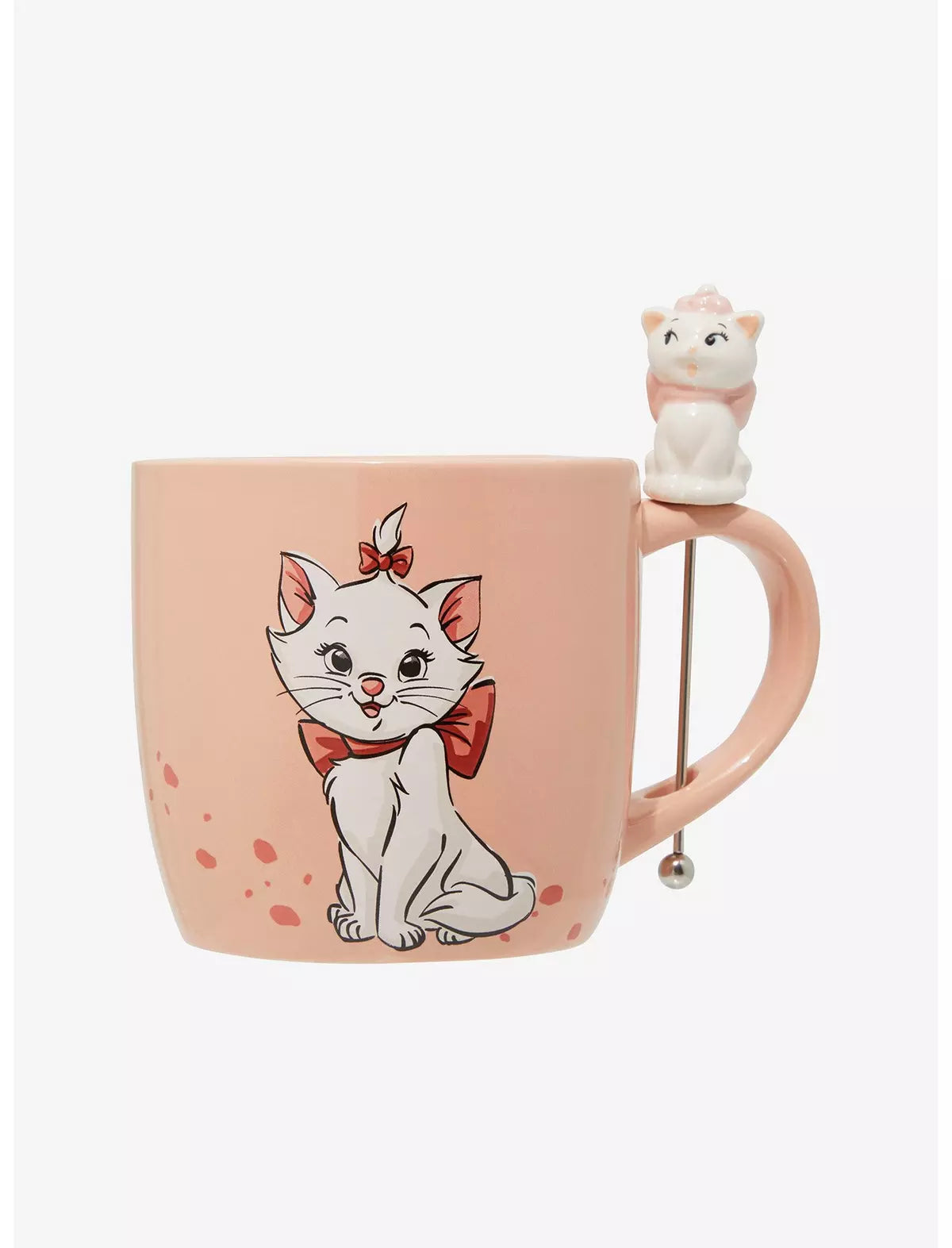 ¡Añade un toque femenino a tu comida con esta taza de los Aristogatos! Con un diseño de Marie, esta taza incluye un agitador con un dije del gatito en la parte superior, perfecta para tu próxima noche de cine.
