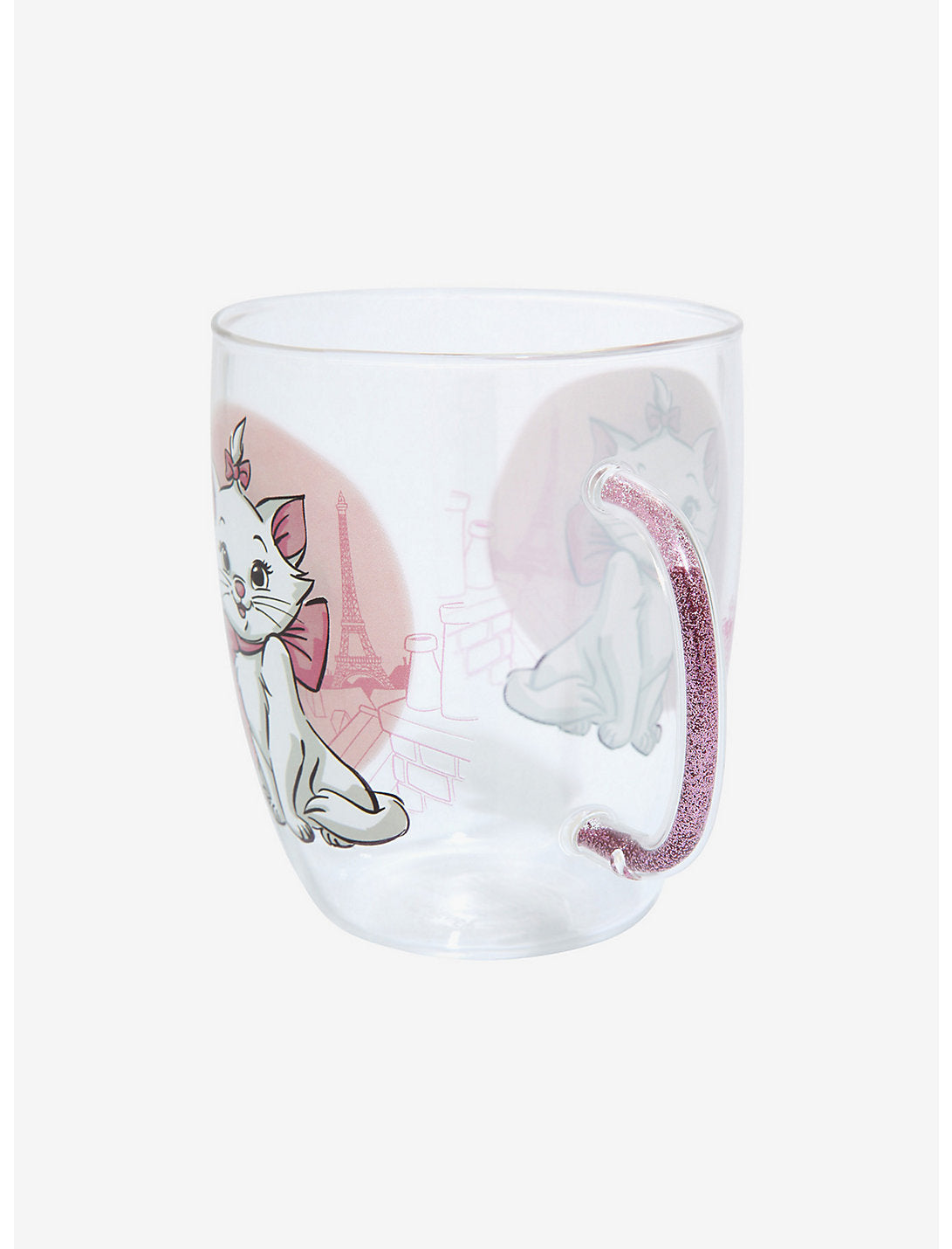 ¡Disfruta de tus bebidas más femeninas con esta taza de Disney con Marie de The Aristocats! El lindo gatito se sienta frente a un fondo parisino. ¡Cuenta con un mango lleno de brillo!