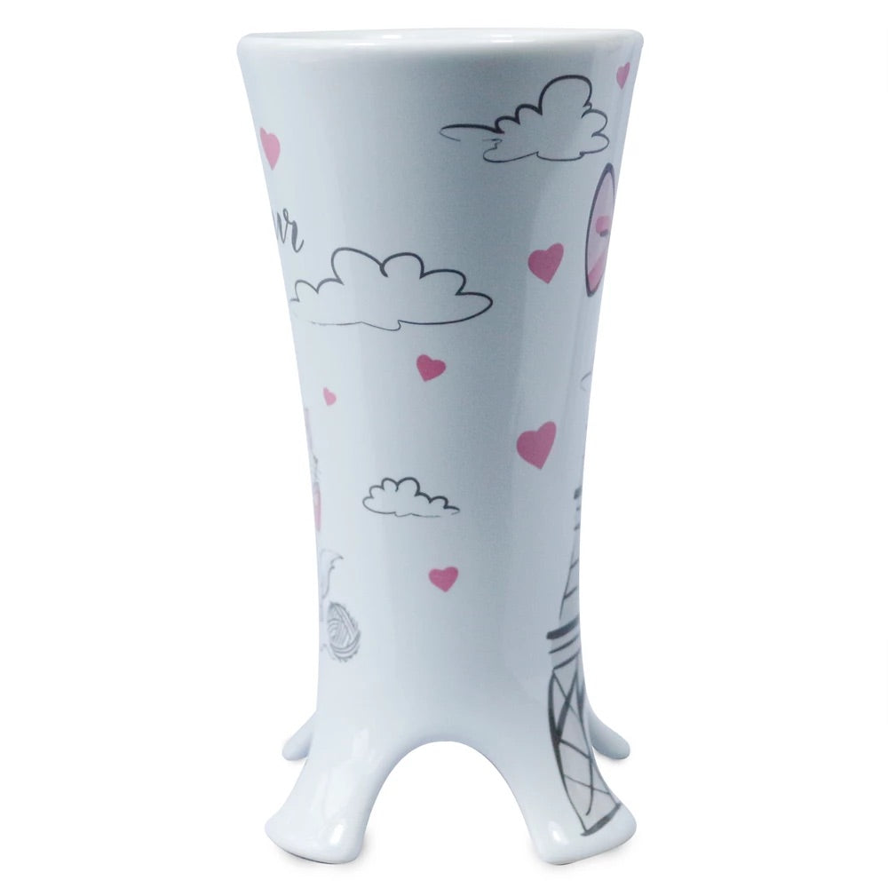 ¡Comience el día con un vertido perfecto de su bebida favorita en esta elegante taza de café con leche! Inspirada en Marie y sus aventuras parisinas, esta taza presenta un diseño de lazo rosa y pies con figuras en la Torre Eiffel, para un efecto aristocético.
