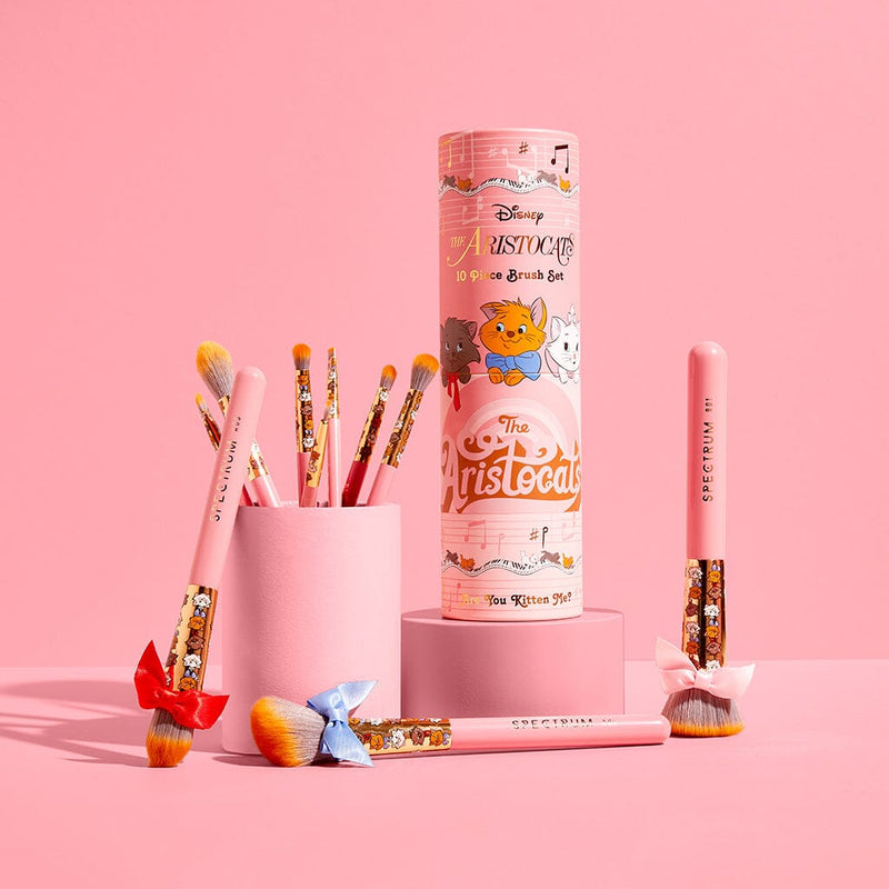 El juego de brochas de maquillaje de 10 piezas de los Aristogatos viene con una selección de herramientas para el rostro, los ojos y las cejas, adornadas con casquillos impresos de Los Aristogatos y adorables detalles de lazo, la diversión se une a la practicidad en este kit inspirado en gatitos. Tanto a ti como a tus amigos peludos les encantará el hecho de que este juego de brochas también sea vegano.