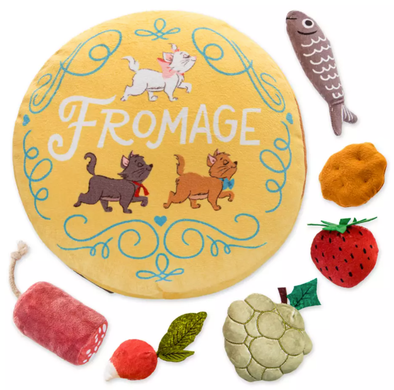 A Kitty le encantará arañar y atrapar estos suaves y peludos juguetes parisinos para mascotas "box lunch" y el cojín "rueda de queso" con decoración impresa de Los Aristogatos de la diseñadora Ann Shen.