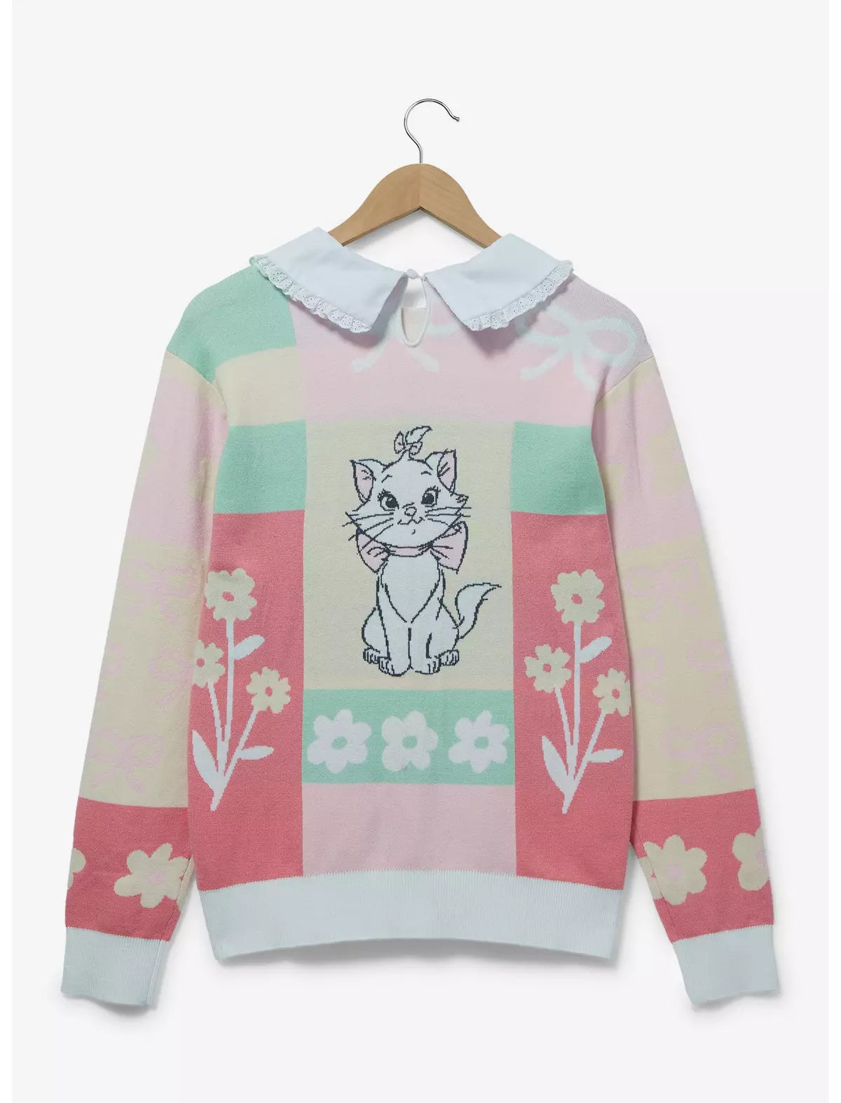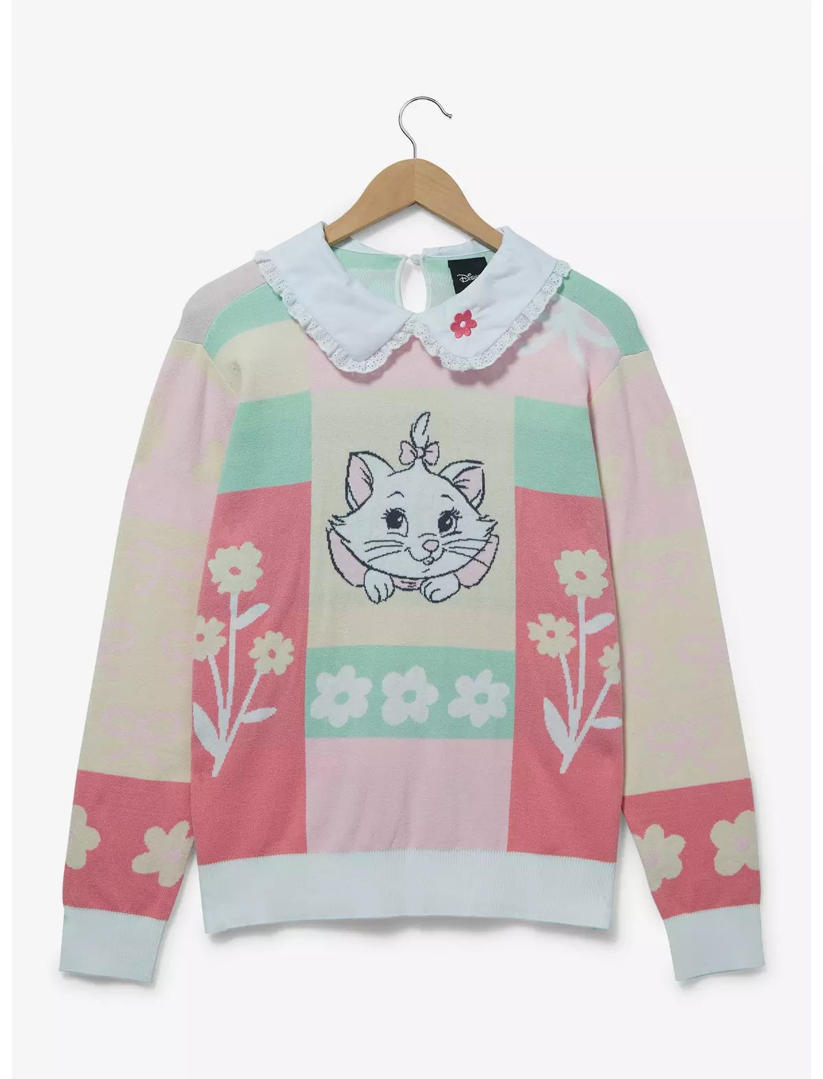 ¡Endulza tu guardarropa de Disney con este suéter inspirado en los Aristogatos! Con un retrato de Marie rodeada de flores y paneles multicolores, este suéter incluye un cuello adjunto con una flor bordada, perfecto para picnics, viajes a los parques de Disney y más.