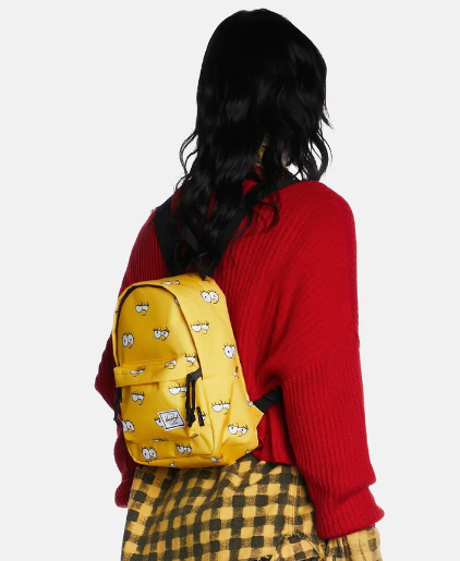 - Minimochila Herschel Lisa Simpson Classic porque no puedes ser eliminado. Esta mochila viene con varios compartimentos, cierres de cremallera, correas ajustables y un estampado de Lisa Simpson por todas partes.