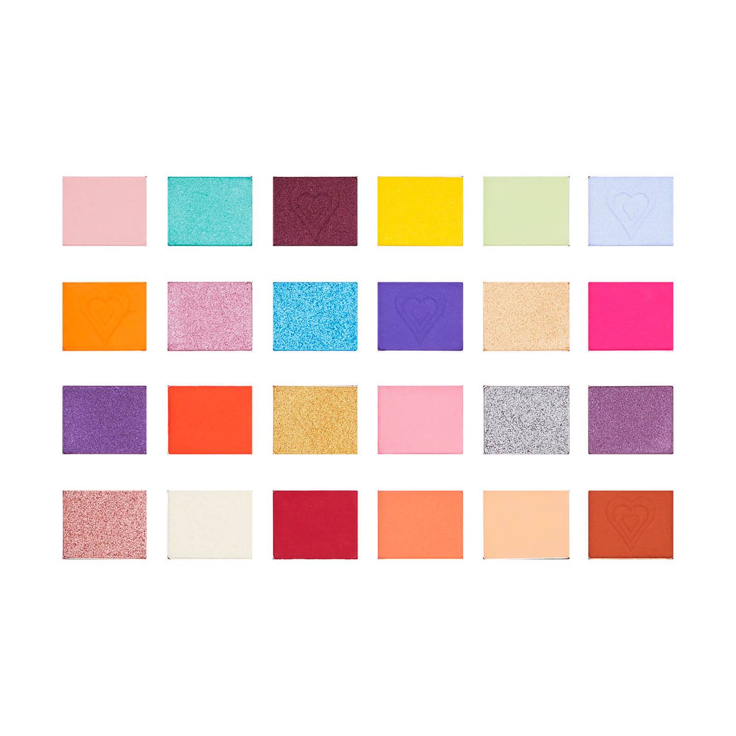 ¡Esta paleta está inspirada en el primer verano de amor de Marge y Homer! Con 24 tonos de brillos y neutrales inspirados en los años 70 en fórmulas mate y brillantes. ¡Perfecto para looks geniales de todos los días, para vibras de poder floral listas para festivales! La paleta presenta nombres de tonos inspirados en esta clásica historia de amor, incluidos GROOVY, un naranja cálido mate, CHILL, un brillo índigo pastel y PROM KING, un brillo granate profundo. Los jóvenes Homer y Marge aparecen en el frente del empaque, y algunos tonos están grabados con corazones de amor para que coincidan con el espejo dentro del compacto.