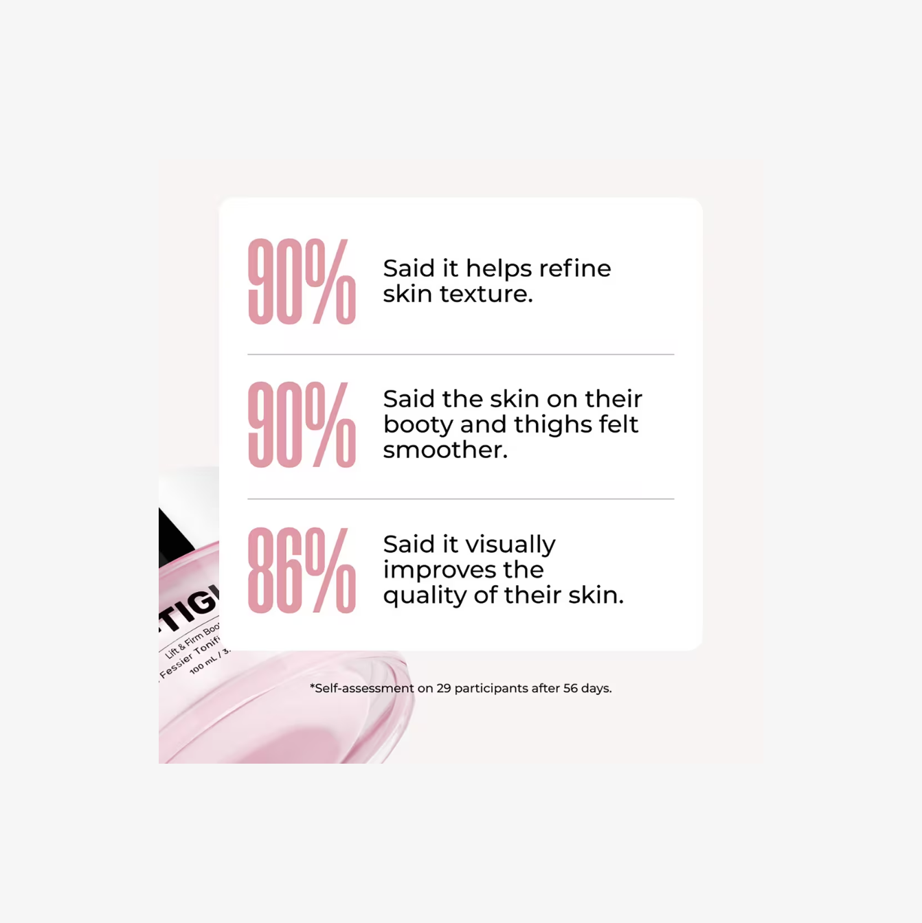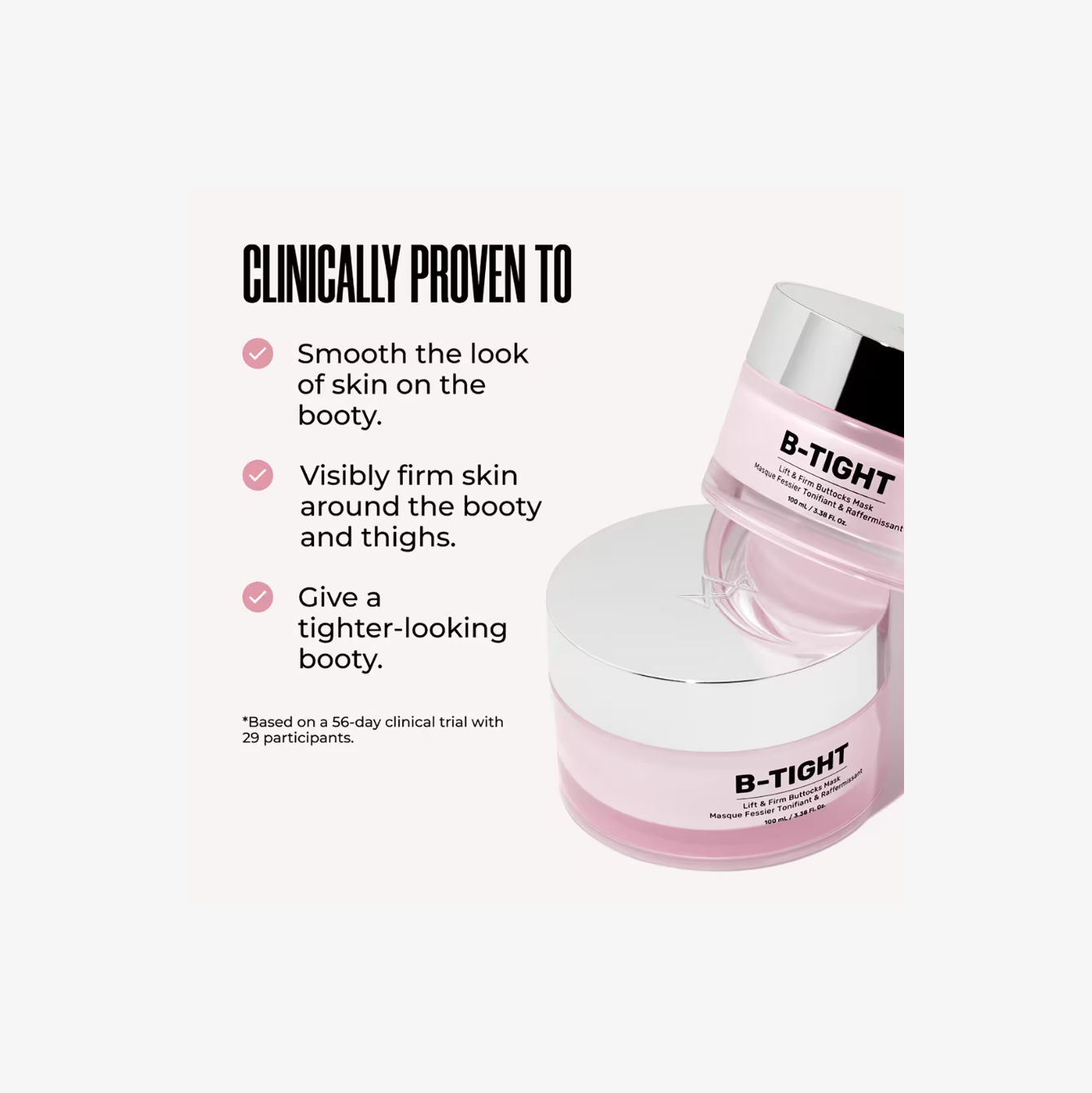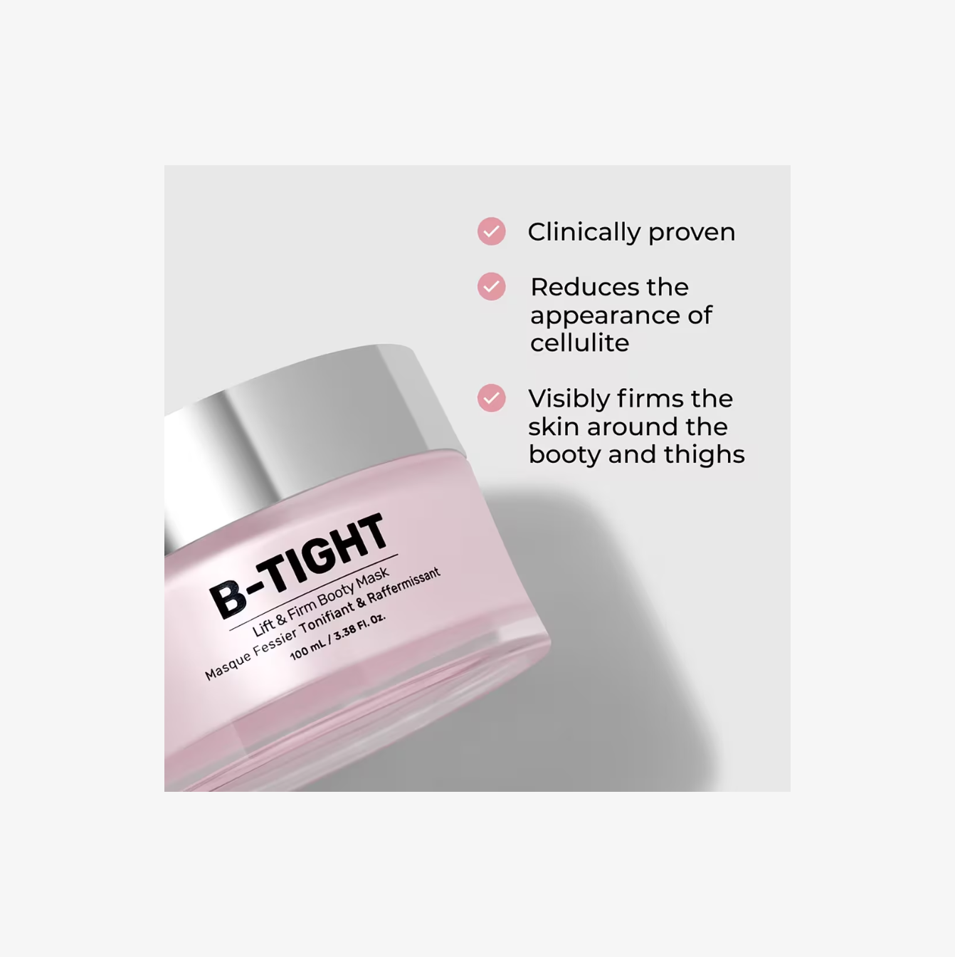 MAËLYS B-TIGHT Lift & Firm Booty Mask está clínicamente comprobada para reducir la apariencia de la celulitis y reafirmar visiblemente la piel de glúteos y muslos. Contiene extracto de Brazilian Peppertree para alisar y tensar la piel grasa, junto con ingredientes energizantes que penetran en la superficie de la piel.
