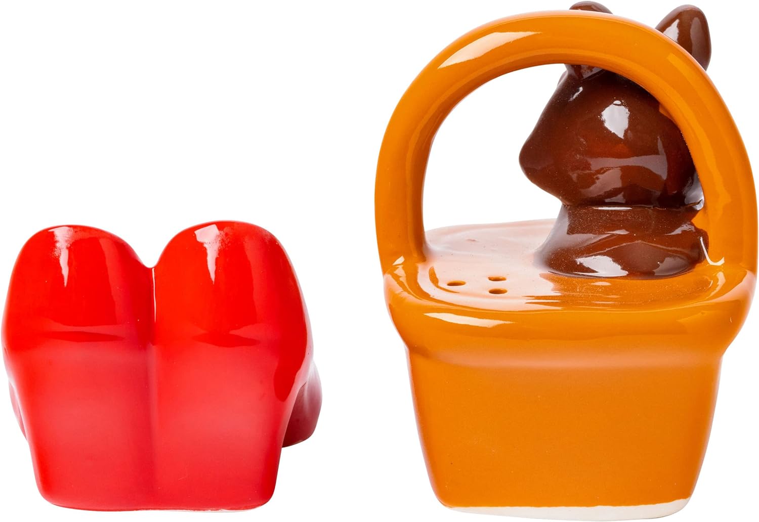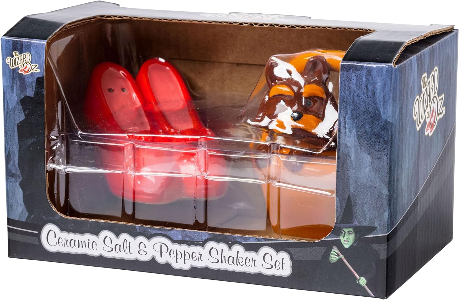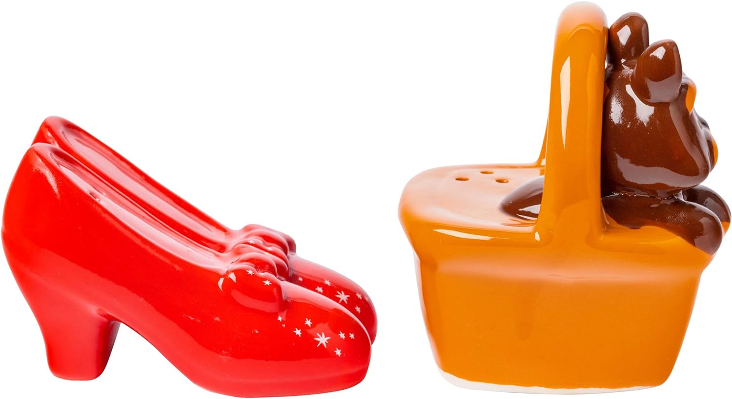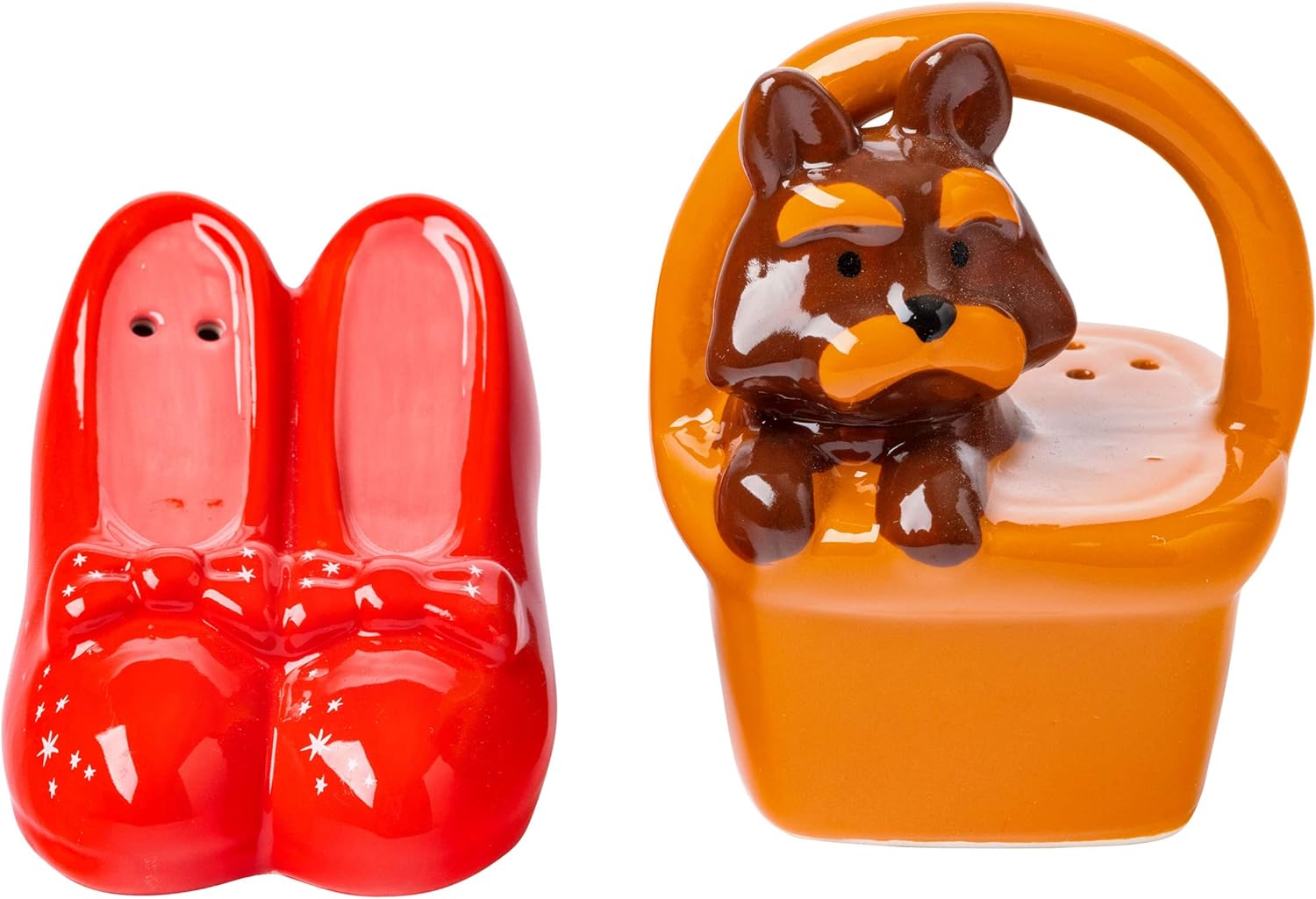- Añade un poco de especia: Sacude tu juego de sal y pimienta con estos impresionantes saleros y pimenteros de cerámica Wizard of Oz. Este juego cuenta con una coctelera de pantuflas Ruby de Dorothy y el otro cuenta con Toto en una canasta
