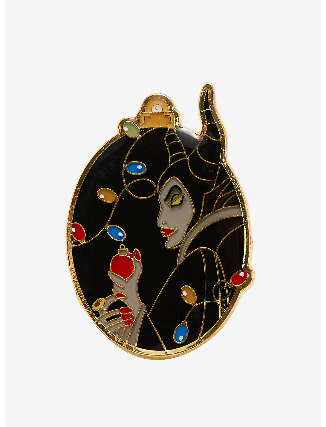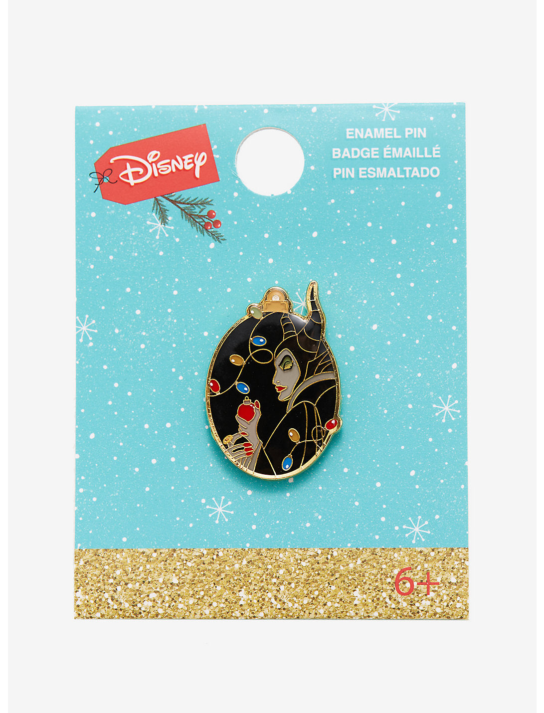¡Maléfica está aquí para darle un estilo festivo a tu colección de broches de esmalte de Disney! Presentado en un marco ovalado diseñado para parecerse a un adorno navideño, el icónico Disney Villain de Sleeping Beauty posa con luces navideñas y adornos para un complemento navideño apropiado para su bolso, chaqueta o tablero de corcho.