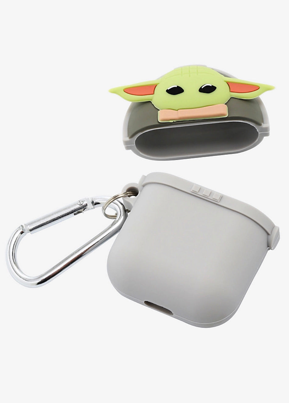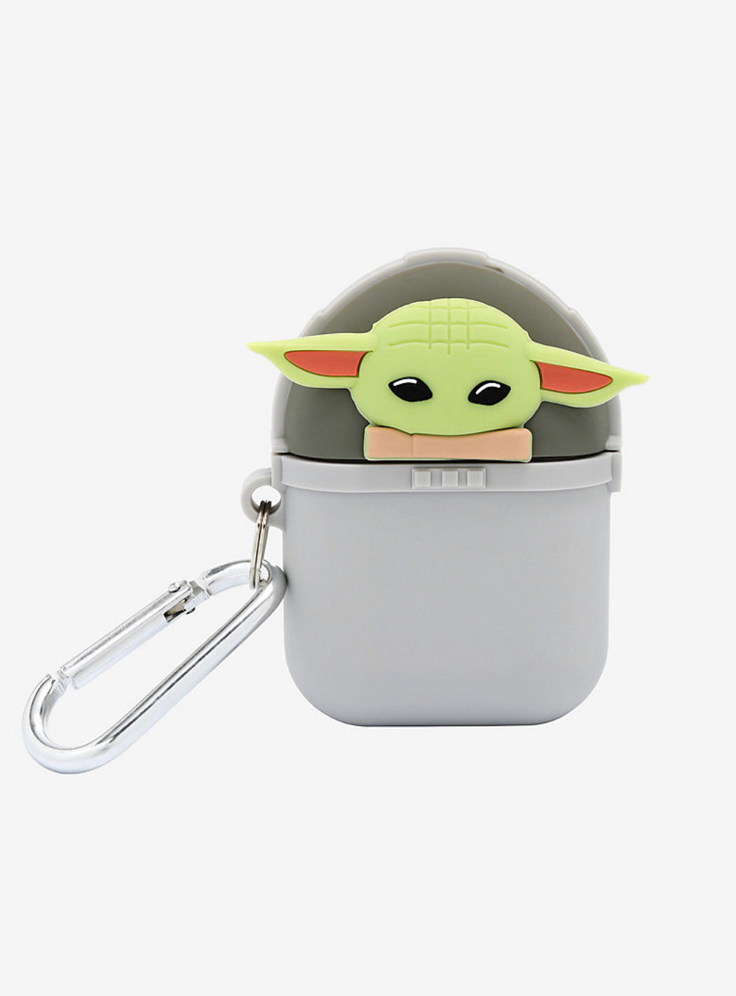 Al niño le fascinan los objetos pequeños, como la perilla de control de Mando's Razor Crest, y sus auriculares. ¡A "Baby Yoda" le encantaría sujetar sus auriculares inalámbricos en esta funda de silicona, con la forma de su cochecito de The Mandalorian! Viene con un mosquetón plateado para que puedas llevar tu música por la galaxia.