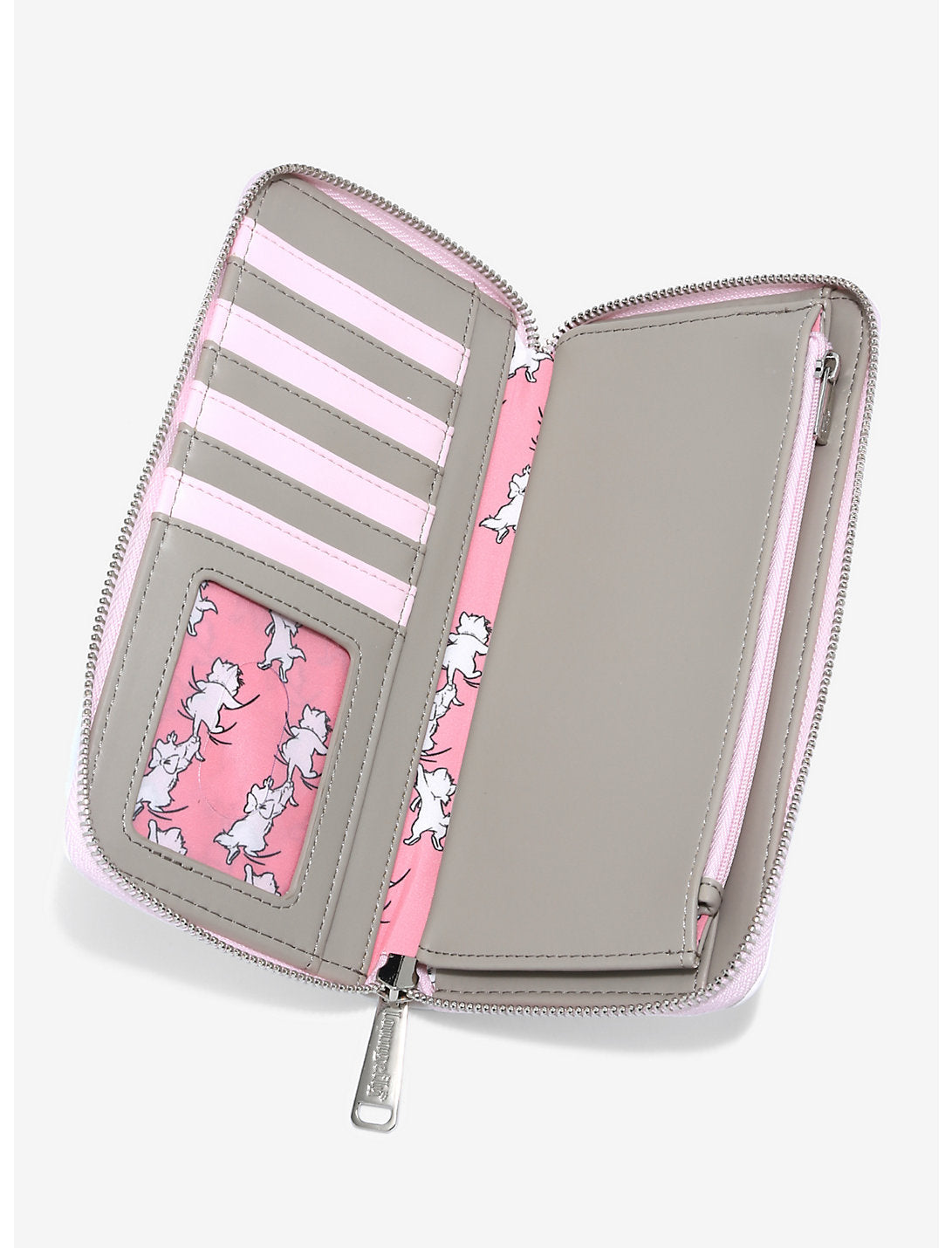 ¡Marie está aquí para traer un poco de moda floral a tu look con esta billetera Loungefly Disney! Destacado en el diseño frontal rodeado de hermosos detalles de flores bordadas, el gatito Aristocats comparte una sonrisa, con la esperanza de alegrarle el día cada vez que lleve este bolso para sus viajes diarios. También cuenta con una insignia de la marca esmaltada en la parte posterior, herrajes plateados, siete bolsillos para tarjetas, una funda transparente para identificación, un compartimento para billetes con cierre de cremallera y un patrón de forro interior de Marie y sus dos hermanos, Berlioz y Toulouse.