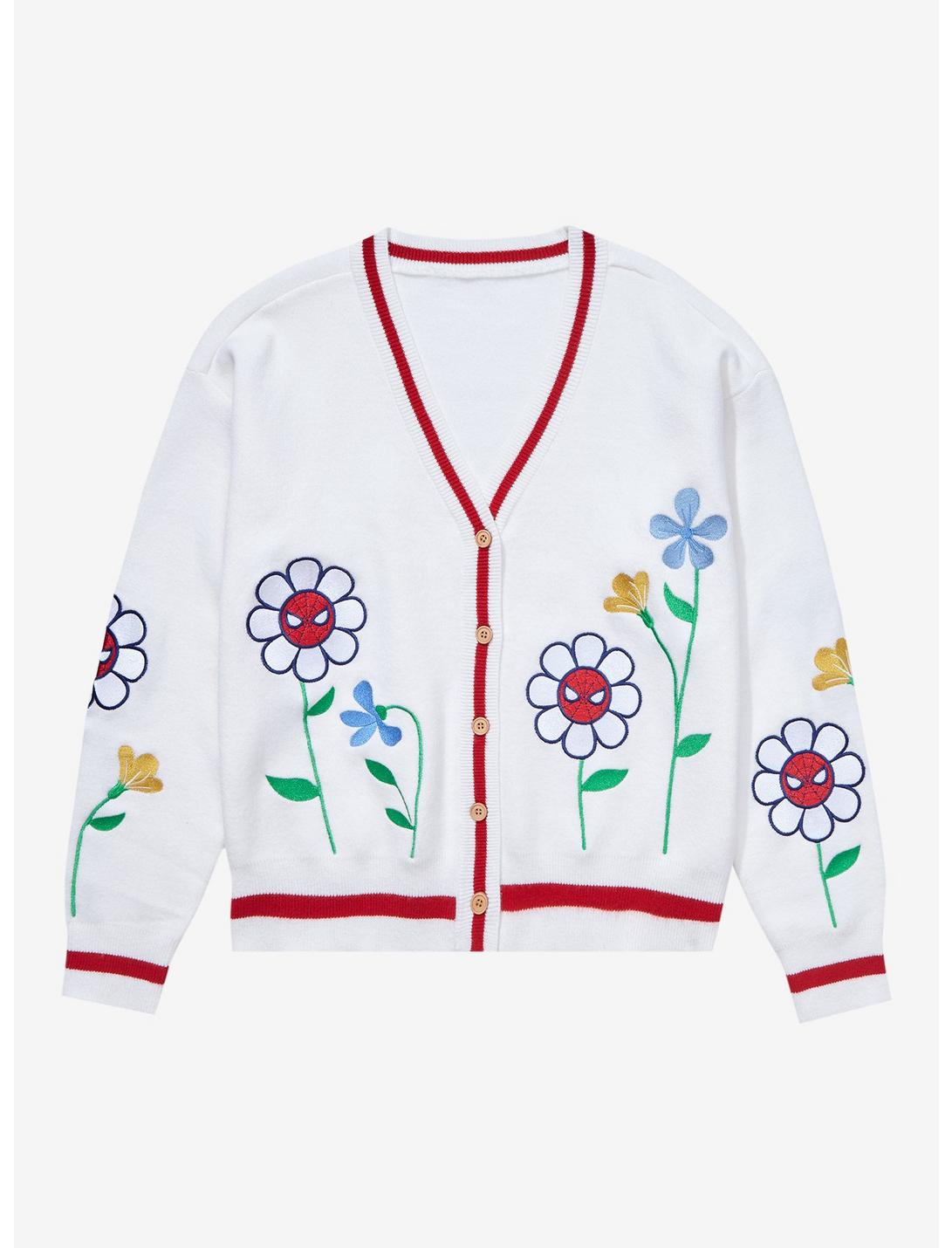 ¡Agrega un poco de estilo Marvel a tu guardarropa con este cárdigan tejido de Spider-Man! Con un dobladillo y bordes acanalados, este moderno cárdigan presenta al adolescente convertido en héroe como flores bordadas en la parte inferior y las mangas para agregar un poco de fuerza a tu look.