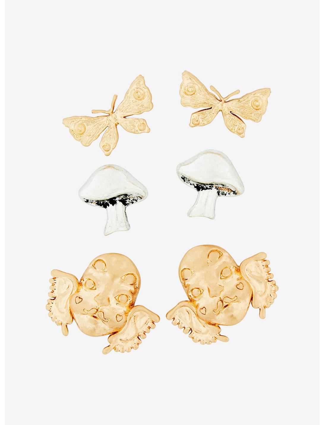Si quieres viajar con la magia, ¡ponte estos aretes de Melanie Martinez! Inspirado en Portals, este conjunto incluye aretes con máscara, mariposa y seta.