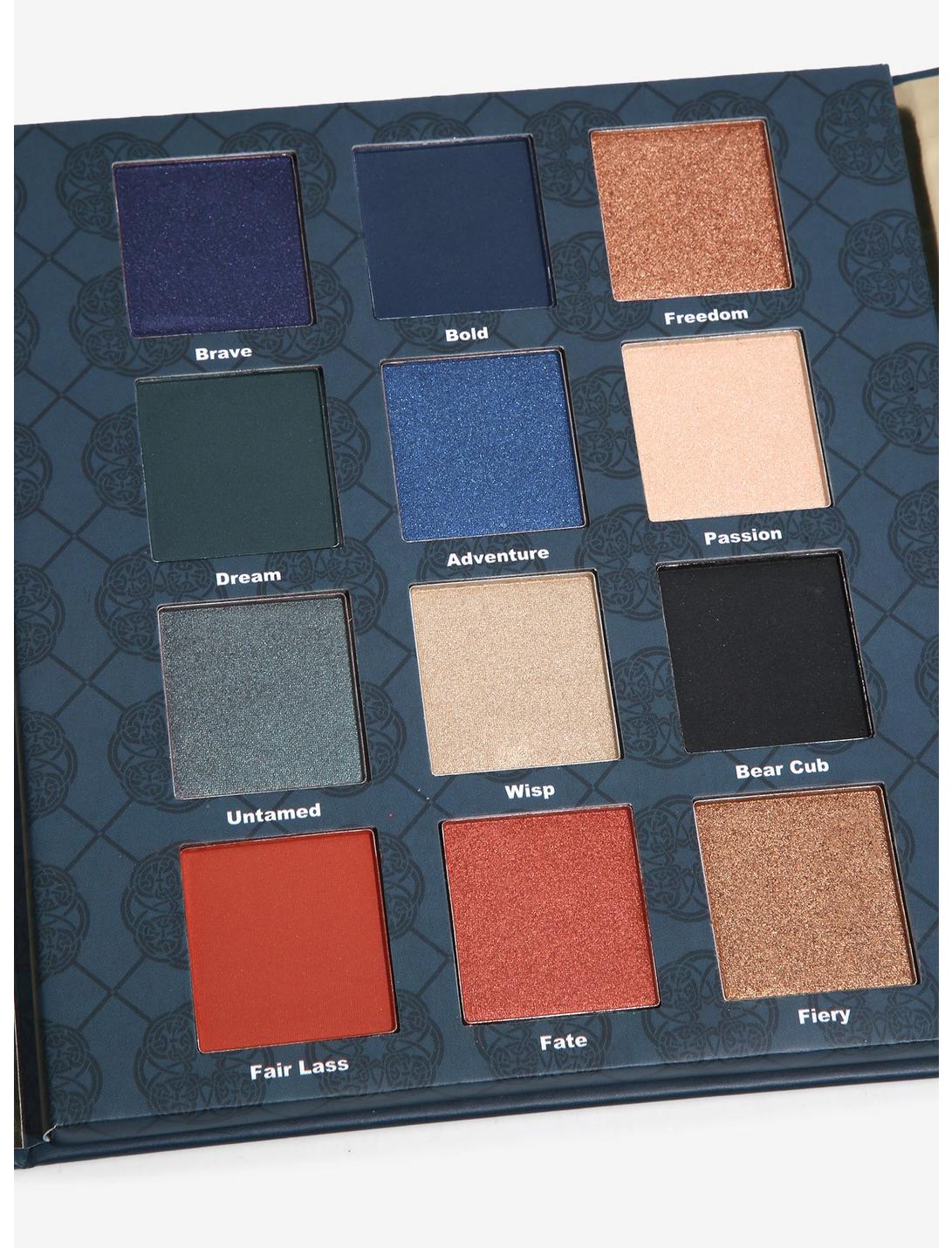 ¡Ahora puedes canalizar la fuerza y la belleza del clásico de Disney•Pixar, Brave, cuando agregas esta paleta de sombras de ojos a tu colección! Con una mezcla de mates y brillos libres de crueldad animal, puedes transportarte directamente a las escenas de la película icónica cuando usas tonos como "Fate", "Freedom" y "Fair Lass". Cargada con 12 bandejas y dos espejos desplegables, el frente de esta paleta presenta un emblema de Mérida y un oso del nuevo tapiz de la familia.