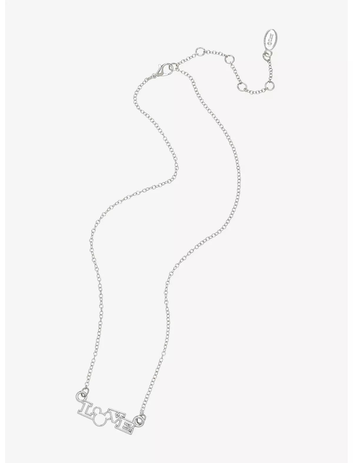 ¡Los novios originales de Disney entregan un collar adorable! El hardware plateado une dos dijes con "Love" en una fuente divertida, con la silueta distintiva de Mickey Mouse sirviendo como la "O". Es el regalo perfecto para tu ser querido o, bueno, ¡para ti mismo!
