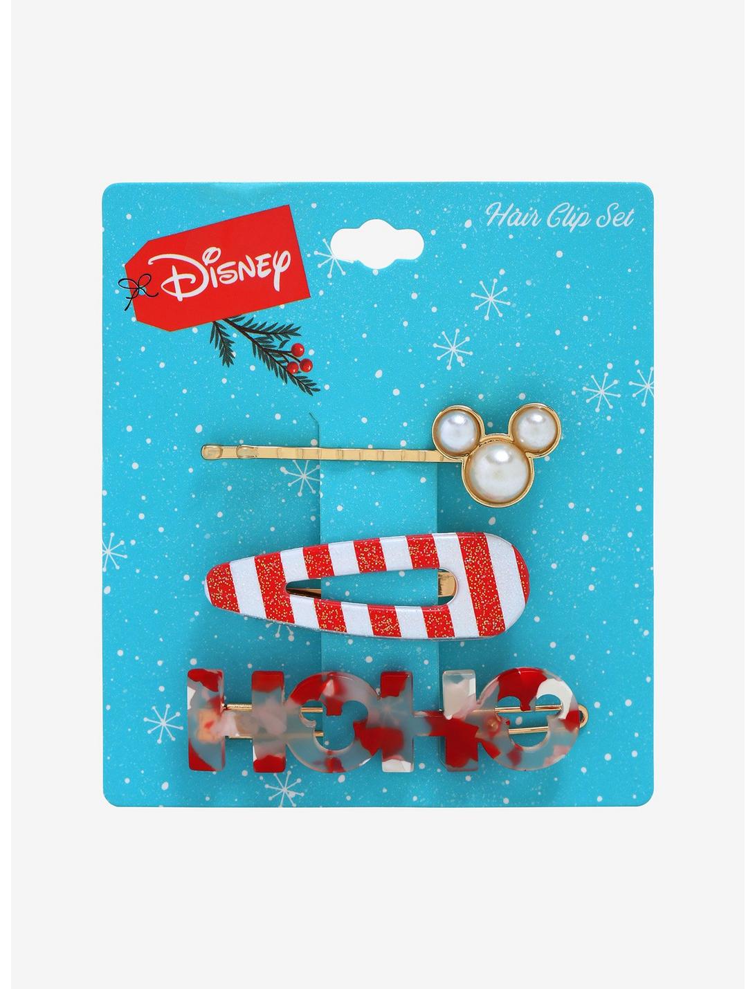 ¡Luce un look navideño con este juego de pinzas para el cabello! Este conjunto de accesorios de 3 piezas incluye una horquilla con un emblema en forma de Mickey Mouse y dos pinzas para el cabello con el tema de menta. Con las letras "HoHo" para unir el look, ahora puedes traer un poco de alegría navideña, al estilo de Disney.