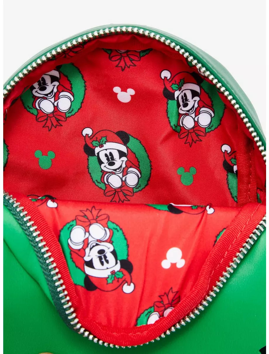 ¡Dale un poco de alegría navideña a tu look con esta pulsera inspirada en Mickey Mouse! Con un aplique de Mickey con un gorro de Papá Noel y una corona detrás de él en el bolsillo delantero, el forro interior incluye un estampado a juego. Con una correa para la muñeca removible y una correa para el cinturón con hebilla removible, este bolso se puede usar de múltiples maneras, perfecto para todas tus aventuras de Disney. ¡Poliuretano; poliéster Aprox. 5 1/2" ancho x 6 1/2" alto x 1 1/2" profundidad Importado