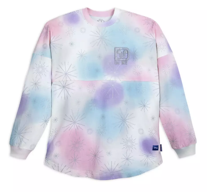 - Mickey y la pandilla llegan al lugar más mágico de la Tierra para celebrar con esta camiseta Spirit que presenta un tratamiento de tinte festivo, fuegos artificiales metálicos y logotipos de Walt Disney World con purpurina hinchada.