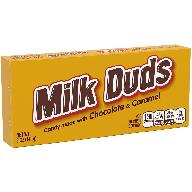 Contiene una (1) caja de 5 onzas de caramelos de chocolate y caramelo MILK DUDS