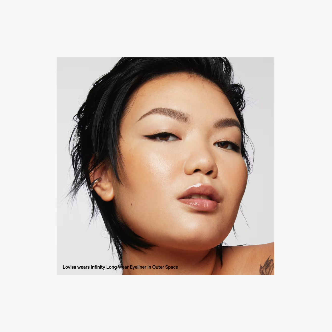 Infinity Long Wear Eyeliner de Milk Makeup es un lápiz delineador cremoso, retráctil y resistente al agua que se desliza suavemente, ofreciendo un color intenso que dura hasta 12 horas.