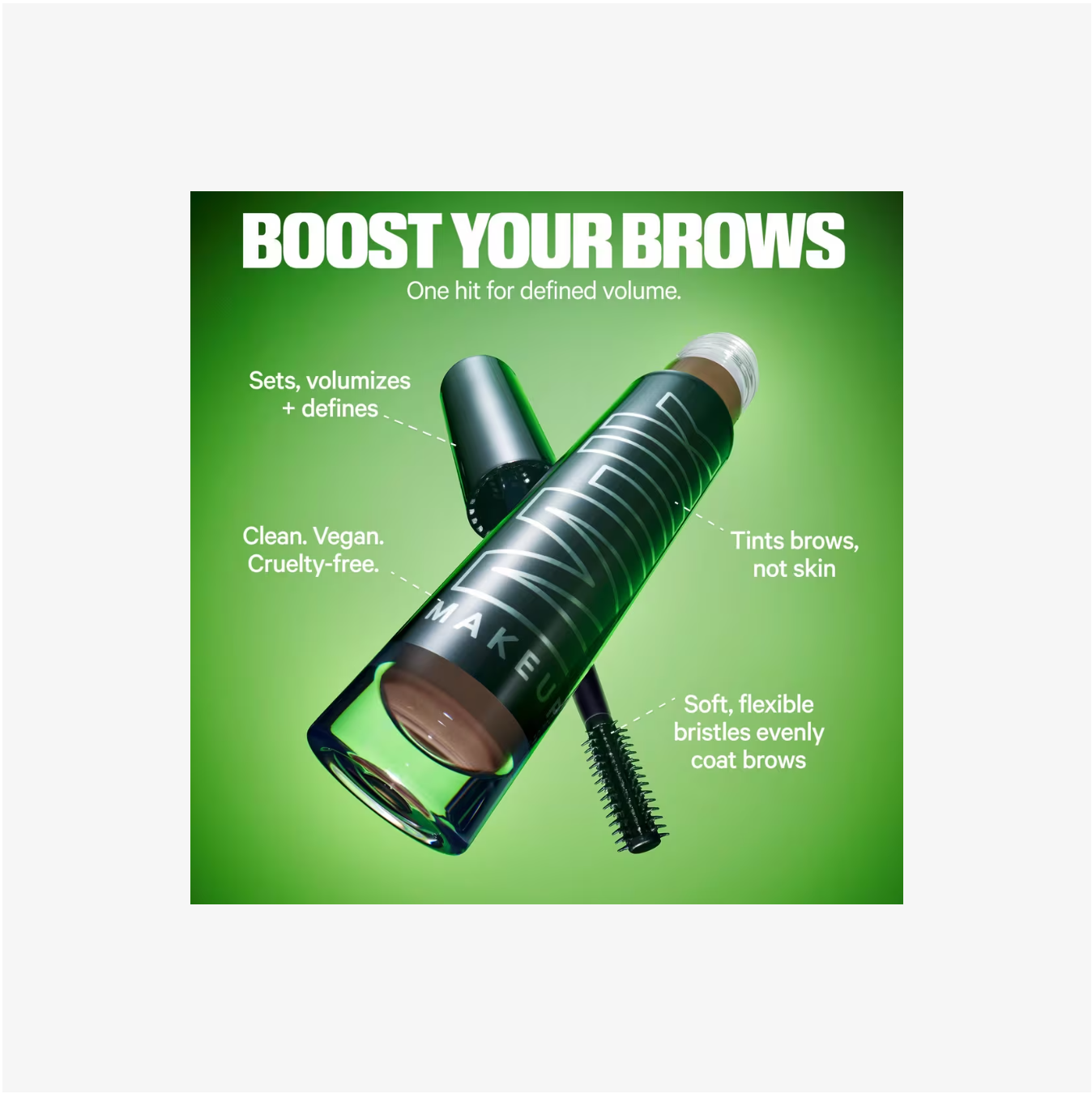 Un gel de cejas innovador con fórmula tubing que define, da volumen y fija las cejas hasta por 24 horas sin correrse ni descamarse.