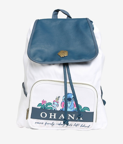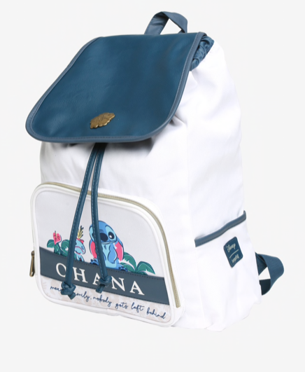 Tus cosas son básicamente tu ohana. Así que no dejes nada atrás. Esta mochila holgada de Disney's Lilo & Stitch presenta Stitch and Scrump en el bolsillo delantero y una solapa azul con detalles florales con botones a presión.