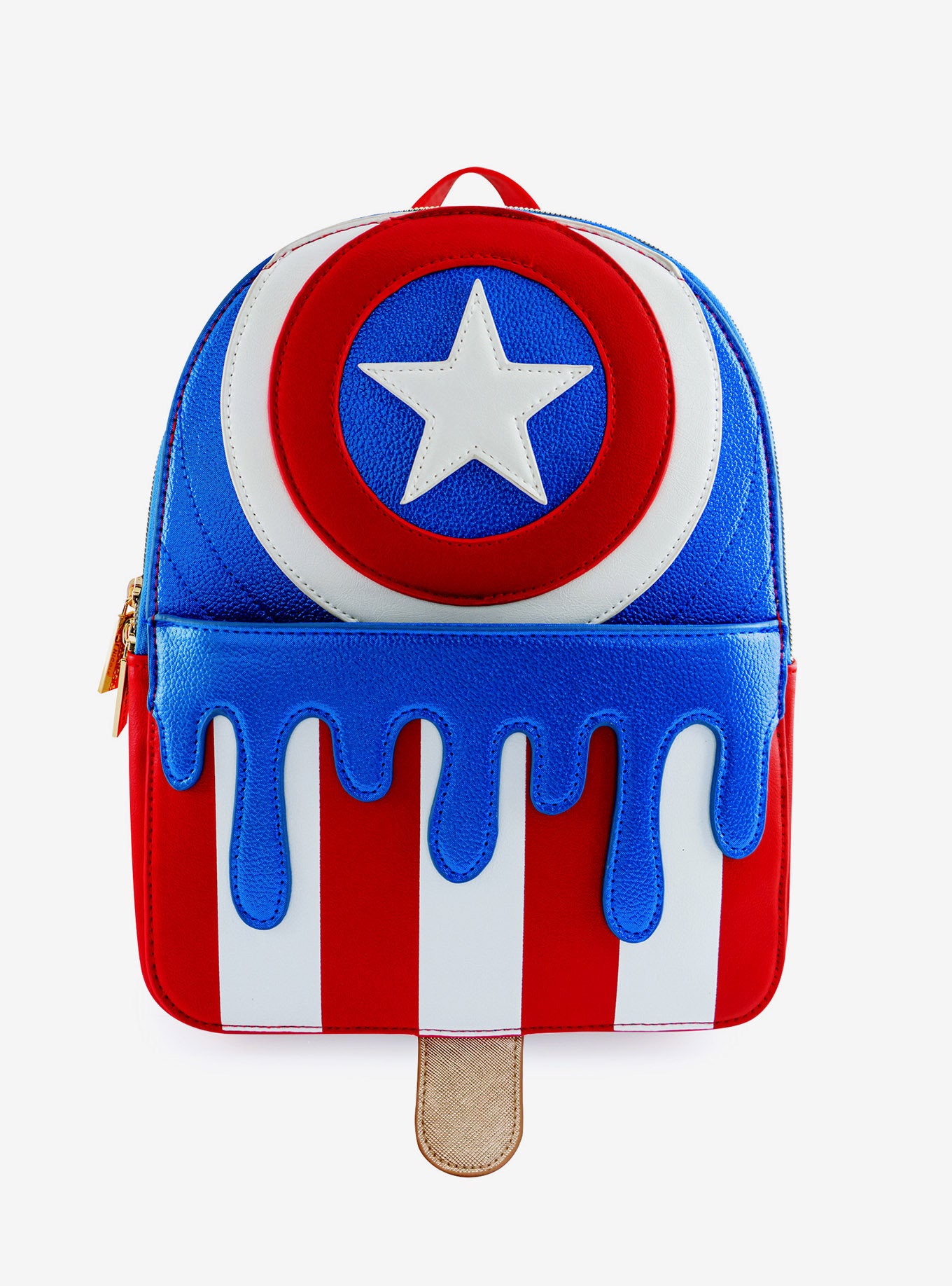 Podríamos usar esto todo el día, ¡y no nos congelará el cerebro! Danielle Nicole impresiona una vez más con esta poderosa mini mochila del Capitán América, con forma de paleta refrescante. Cuenta con detalles de aplicación (¡incluido un palito de paleta que cuelga en la parte inferior!), Herrajes en tono dorado, compartimentos principal y frontal con cremallera, forro interior con un patrón clásico del logotipo de la marca "DN", un bolsillo interior con cremallera y correas ajustables. Aprox. 9 "W x 11" H x 4 "D Poliuretano; forro de poliéster