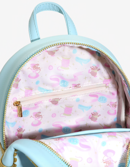 Si un sueño es un deseo que hace tu corazón, ¡entonces estamos soñando con esta mochila! Los ratones de Cenicienta de Disney están cosiendo un bonito vestido en la parte delantera, que presenta un lazo rosa, gráficos de papel dorado y detalles bordados. Abra la cremallera Pumpkin Coach en tono dorado para revelar bolsillos interiores con cremallera y forro de crema con un estampado a juego. Los detalles adicionales incluyen un pequeño gráfico en la parte posterior, una insignia de metal de la marca en el lateral y correas ajustables.
