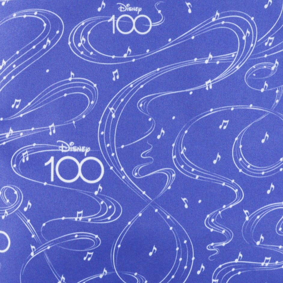 El forro presenta un estampado de personal musical en forma de remolino con el logotipo de Disney100.