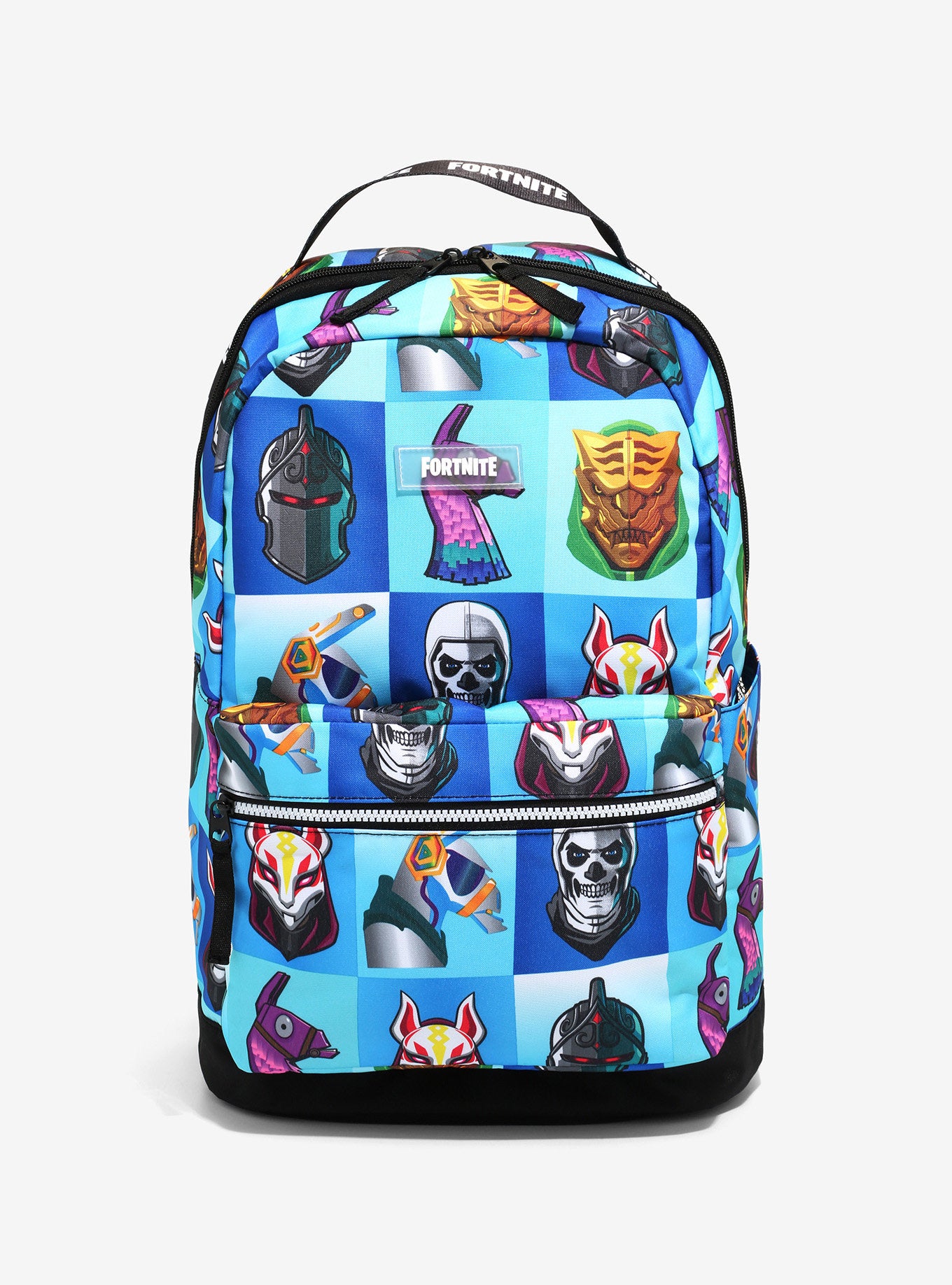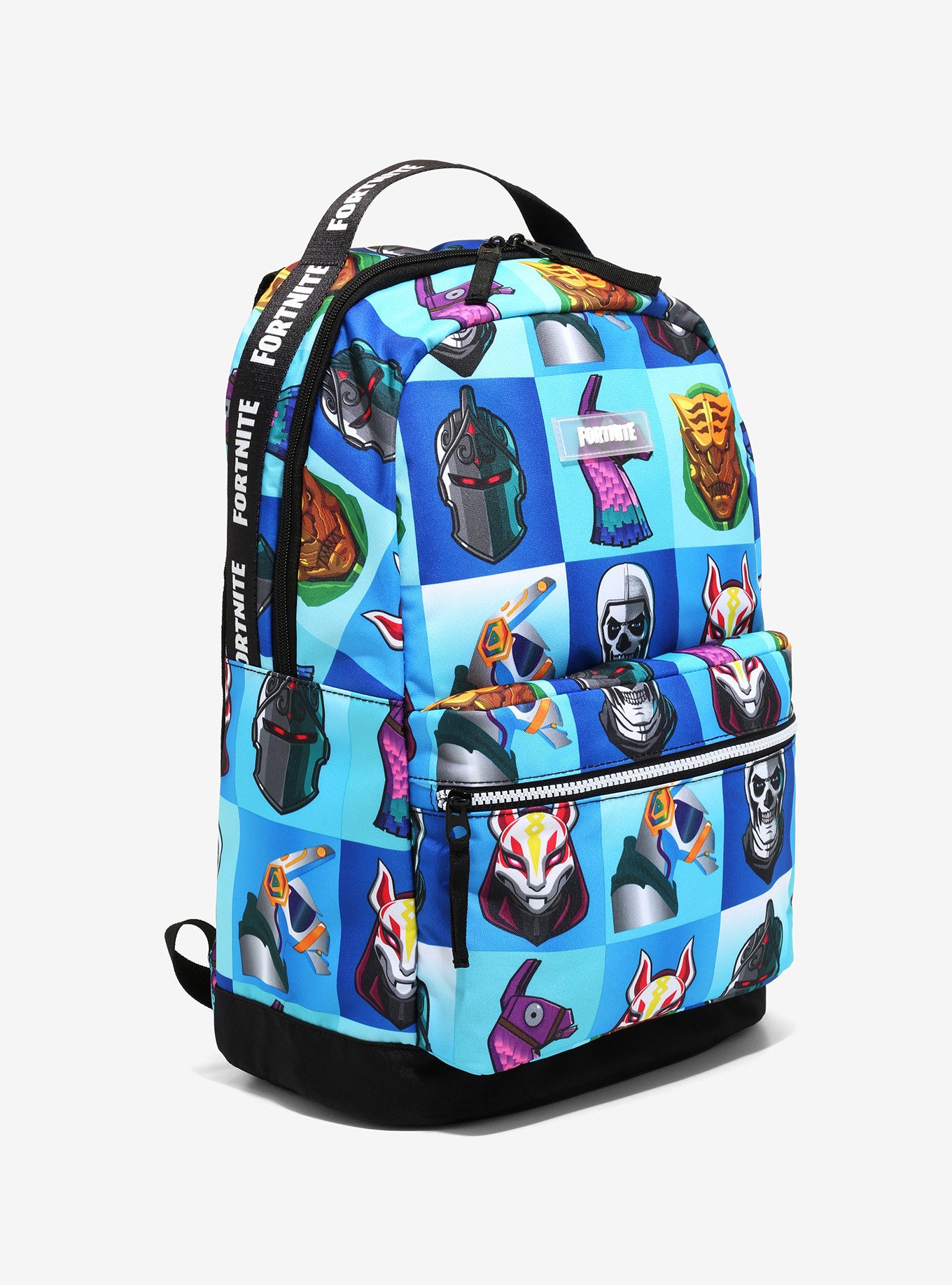 Lleva tu look al más puro estilo Fortnite con esta mochila con estampado de pieles del legendario juego. Con un estampado completo de tus pieles favoritas del juego, con un bolsillo frontal con cremallera, cierre superior con cremallera, bolsillo interior para portátil y correas ajustables.