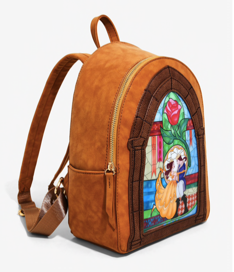 ¡Esta mochila te hará sentir como la bella! Inspirado en Disney's Beauty and the Beast, el diseño de imitación de cuero presenta una encantadora imagen inspirada en vidrieras en el frente, enmarcada por un arco troquelado.