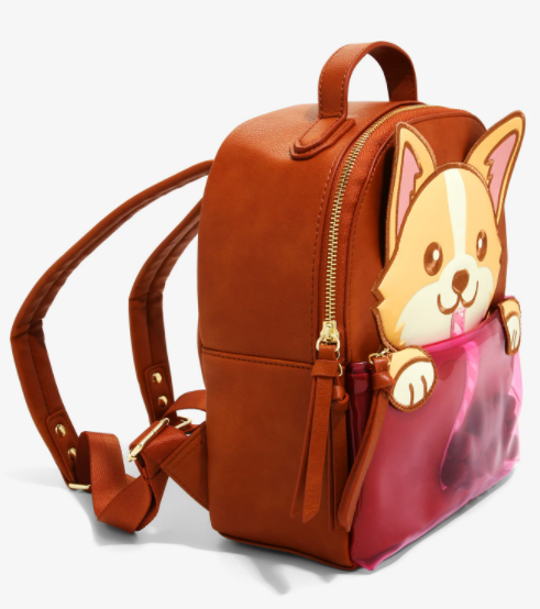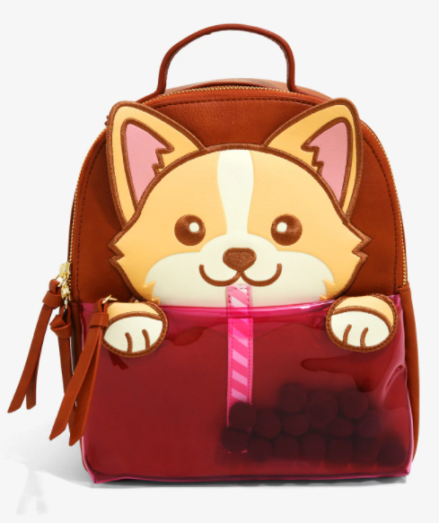 ¡Este lindo corgi quiere ayudar a mantener todos tus elementos esenciales, incluida esa deliciosa boba! Esta mini mochila de piel sintética presenta un corgi troquelado que bebe perlas boba 3D del bolsillo delantero. También cuenta con correas de hombro ajustables y un compartimento principal con cremallera con un bolsillo interior con cremallera.