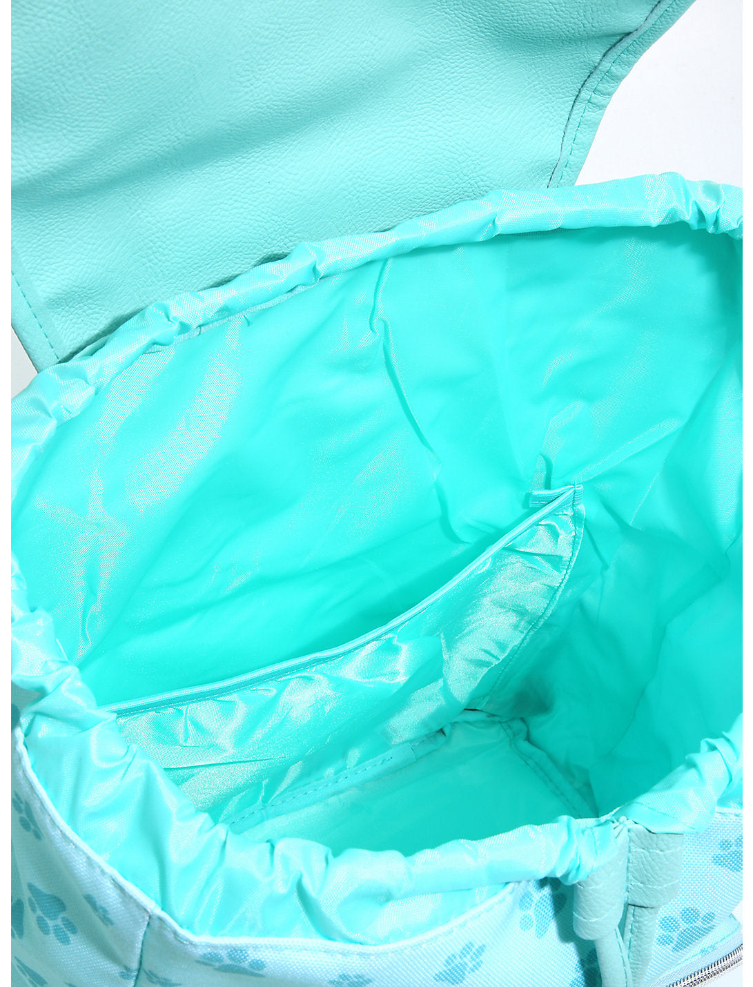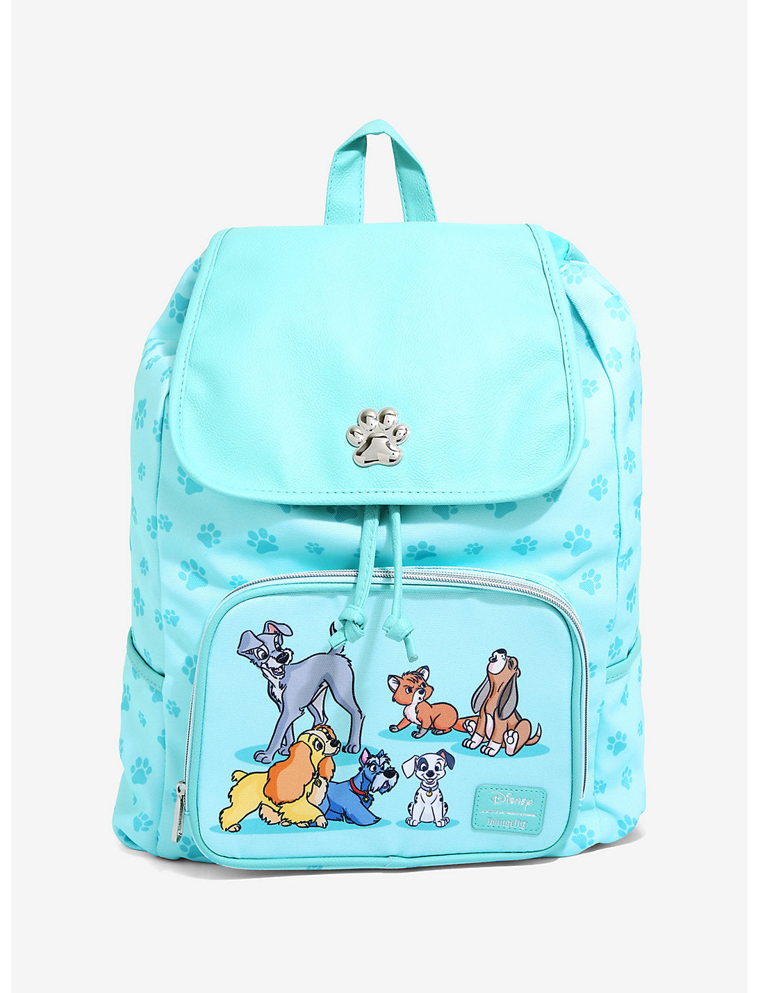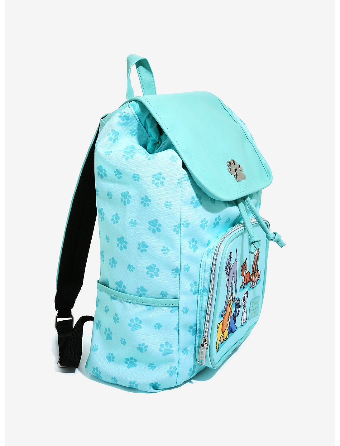 Lleva a tus cachorros favoritos por todas partes con esta mochila color menta con una huella de pata, una pata plateada en la solapa y una imagen de algunos perros de Disney en el bolsillo delantero. Incluye bolsillo interior para computadora portátil y dos bolsillos laterales para botellas de agua.