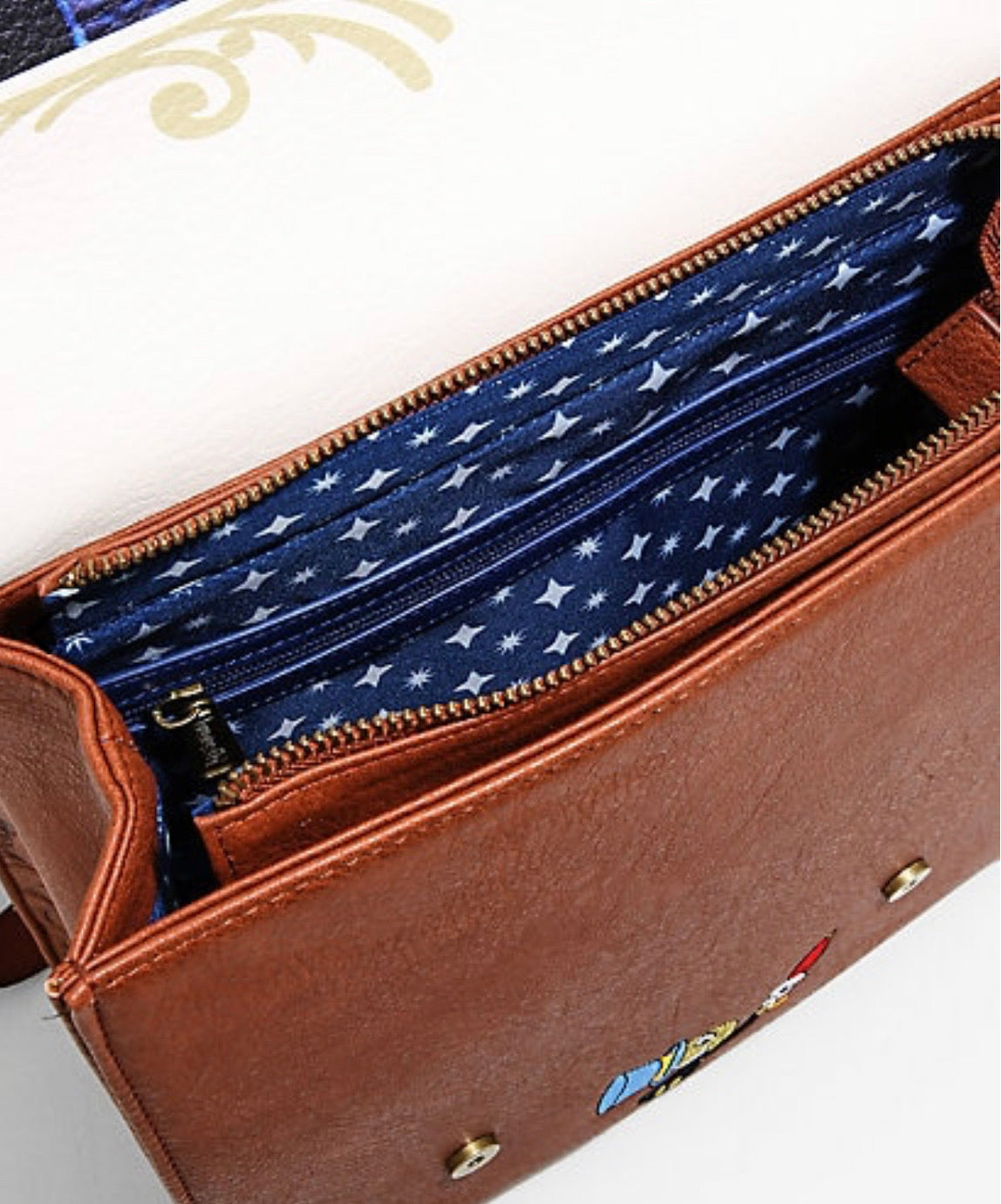 ¡Inspirada en Disney's Pinocchio, esta mochila hará el truco! Cuenta con el grillito bordado, personajes grabados en los lados, un logotipo gráfico en la parte delantera y, debajo de la solapa, un impresionante retrato de la ciudad natal de Pinocho con las estrellas brillando intensamente en lo alto.