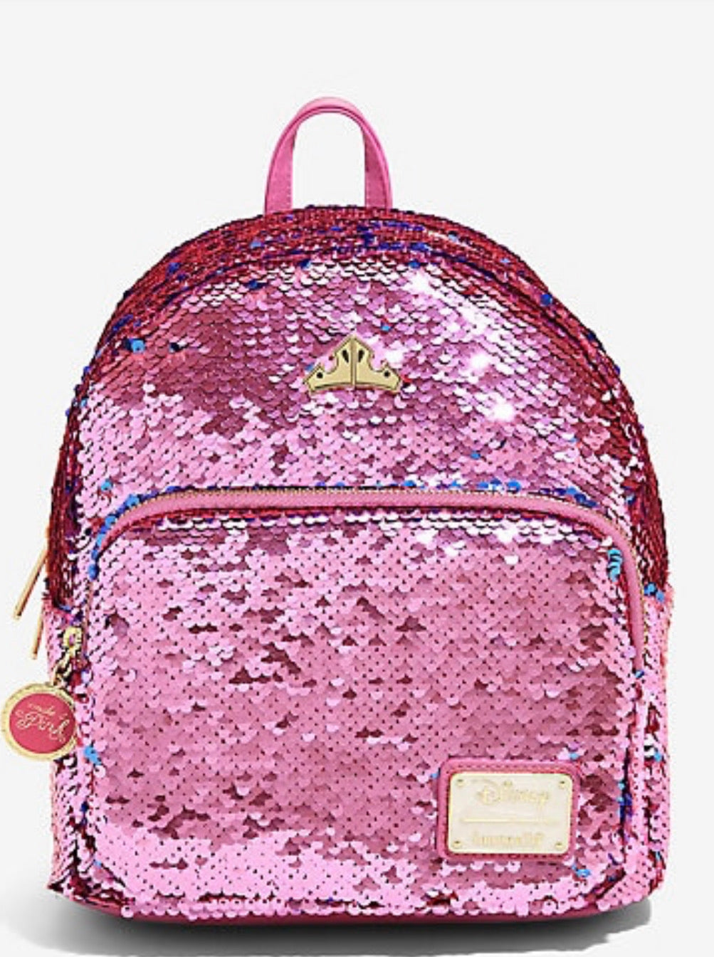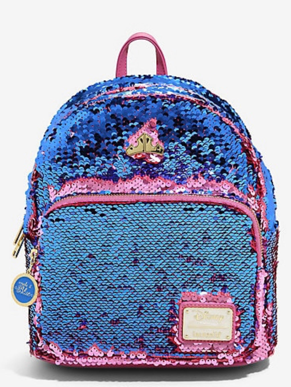 ¡El exterior presenta lentejuelas reversibles que cambian de azul a rosa, al igual que el vestido de Aurora en la Bella Durmiente de Disney!