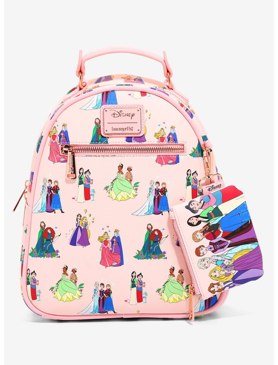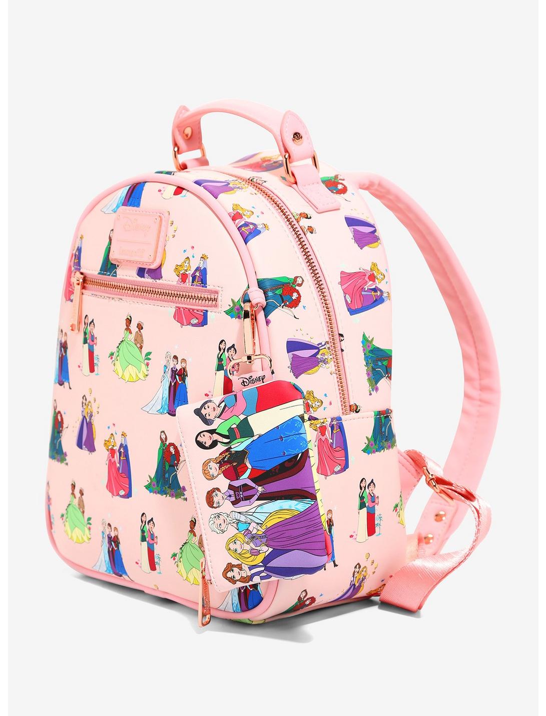 ¡Canaliza tu realeza interior con esta minimochila Loungefly! Con un estampado completo de las princesas de Disney y sus madres, esta minimochila también cuenta con herrajes en tono dorado rosa, bolsillo frontal con cremallera, forro interior con el contorno de las princesas de Disney, insignia esmaltada de la marca, correas ajustables para los hombros y un monedero extraíble a juego. ¡Ahora los fanáticos pueden representar a sus familias reales favoritas de Frozen, Mulan y más de sus clásicos favoritos cuando agregan este estilo a su colección!