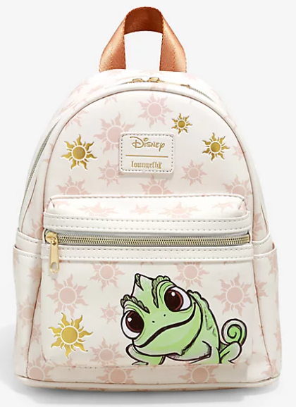 ¡Prepárate para el mejor día de tu vida con tu mejor amiga Pascal! Está listo para animarte a que sigas tus sueños. Esta mini mochila de Tangled presenta a Pascal en el bolsillo frontal con cremallera en un diseño inspirado en ilustraciones. Hay una impresión completa del emblema del sol del reino de Corona, ¡algunos incluso son de un dorado brillante! Correas ajustables y bolsillos laterales.