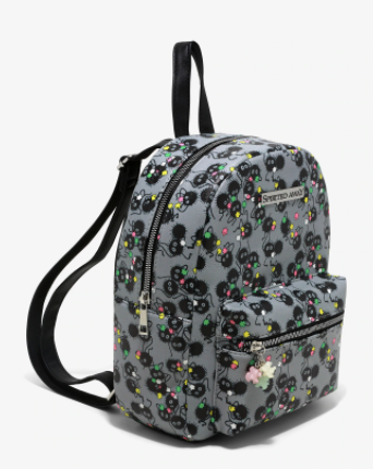 ¿Necesitas un lugar para almacenar todos tus dulces estrella? Estos Sprites de hollín de Spirited Away están listos para ayudar con esta mini mochila. Presenta una impresión completa de Soot Sprites y star candy, y el bolsillo frontal con cremallera presenta encantos de figuras 3D en forma de estrella. Tirantes ajustables, bolsillo interior y herrajes en tono plateado. pre orden : 11/10/20 - 11/21/20