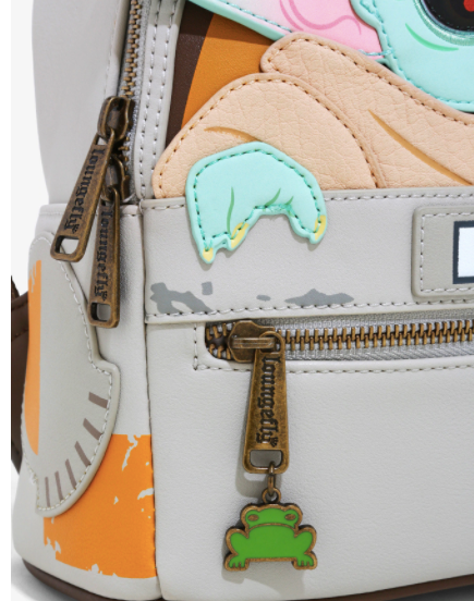 ¡También cuenta con un dije de tirador de cremallera de rana en tono bronce y una placa de metal con la marca!