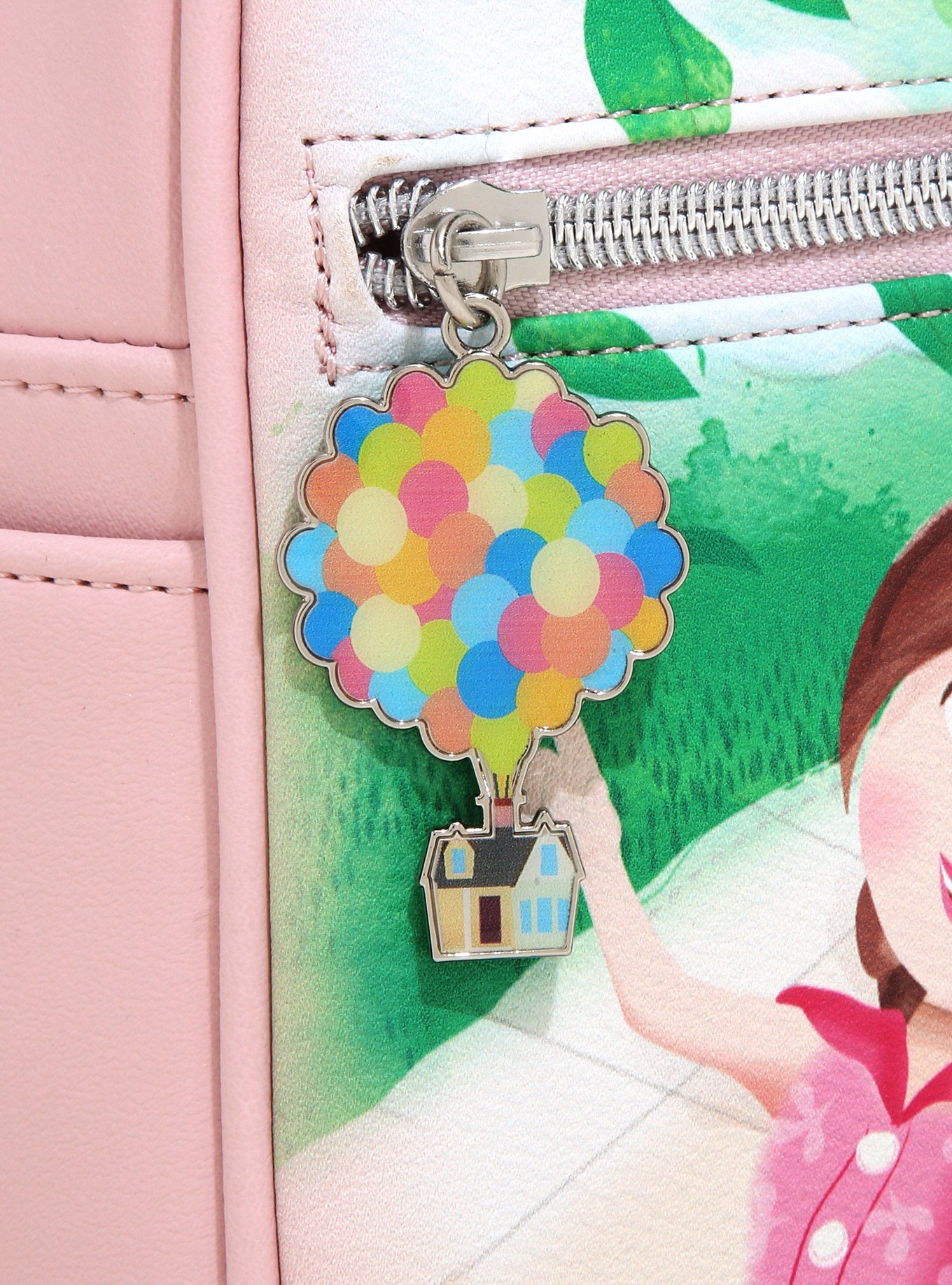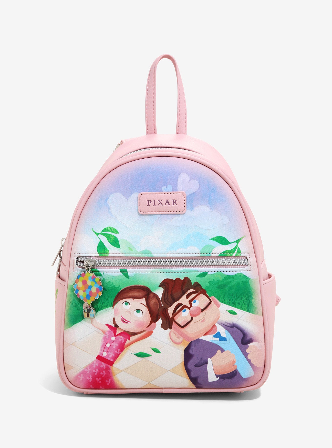Mire las nubes en su próximo picnic como Carl y Ellie. Esta mini mochila rosa de Up presenta a la pareja de picnic.